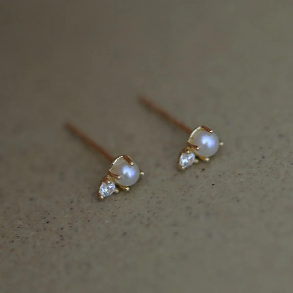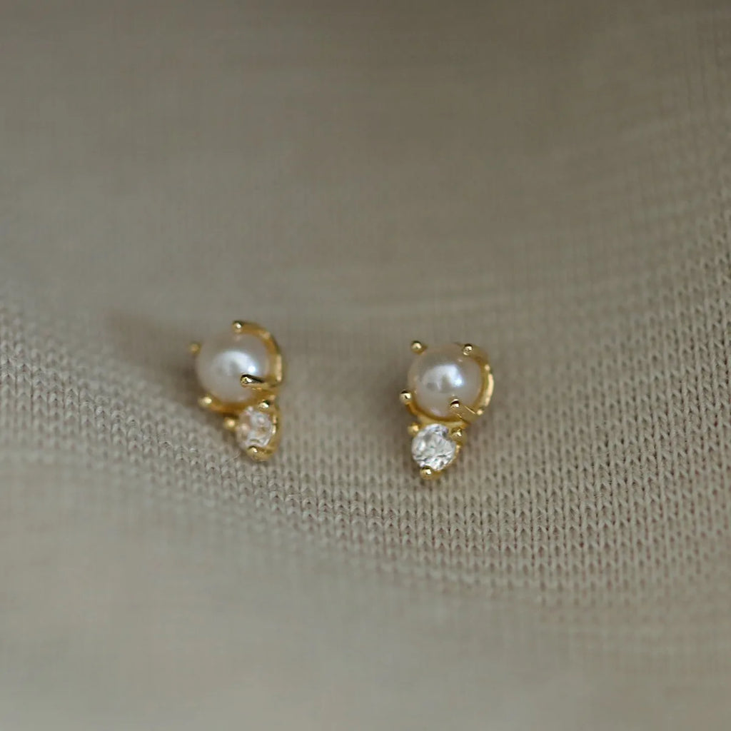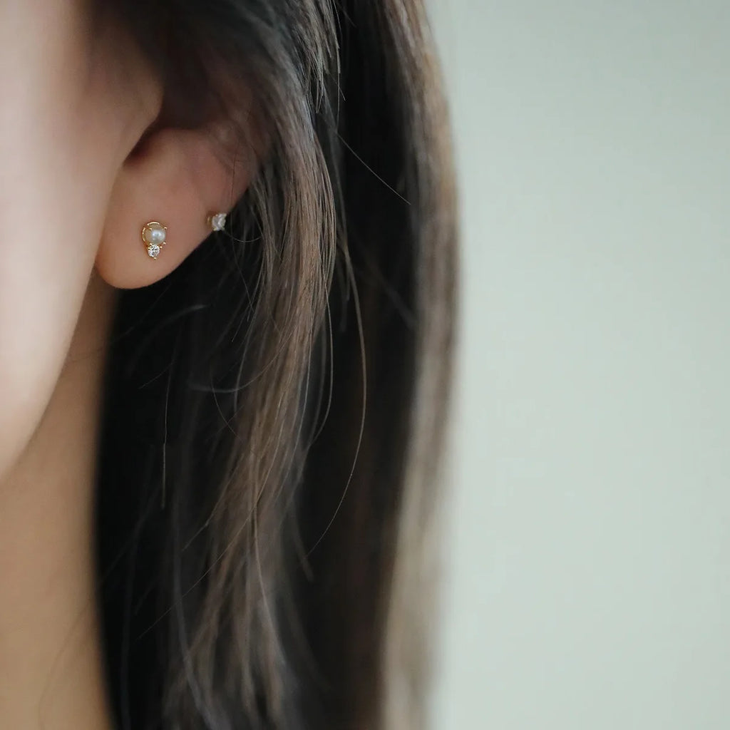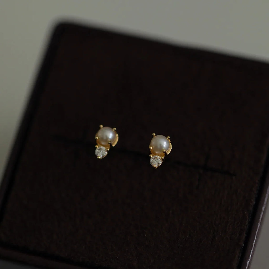 Ohrringe aus 925er Sterlingsilber, vergoldet mit 14 Karat Gold, Mini-Muschelperlen und Zirkonia für Damen, exquisiter Partyschmuck