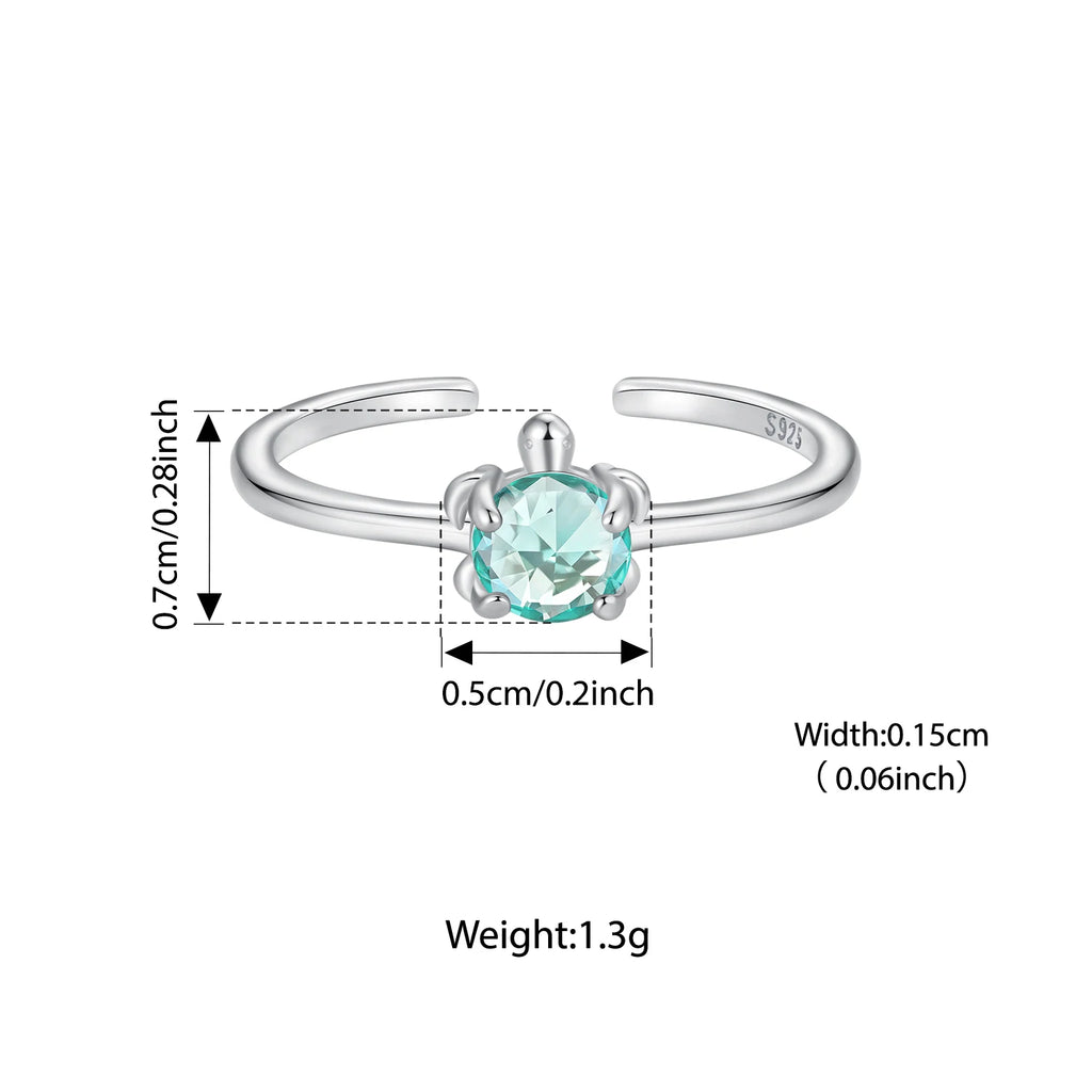 Bamoer 925 Sterling Silver Blue Turtle Open Ring Adjusable Transparent Glass Animal Ring for Women Teens Cute Xmas Wishes Gift