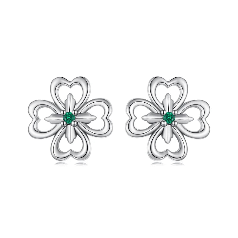 BAMOER Ohrstecker aus 925er Sterlingsilber mit vierblättrigem Kleeblatt und Kreuzmotiv für Damen und Teenager – hypoallergen, niedliches Schmuckstück mit hohler Blume – das perfekte Geschenk