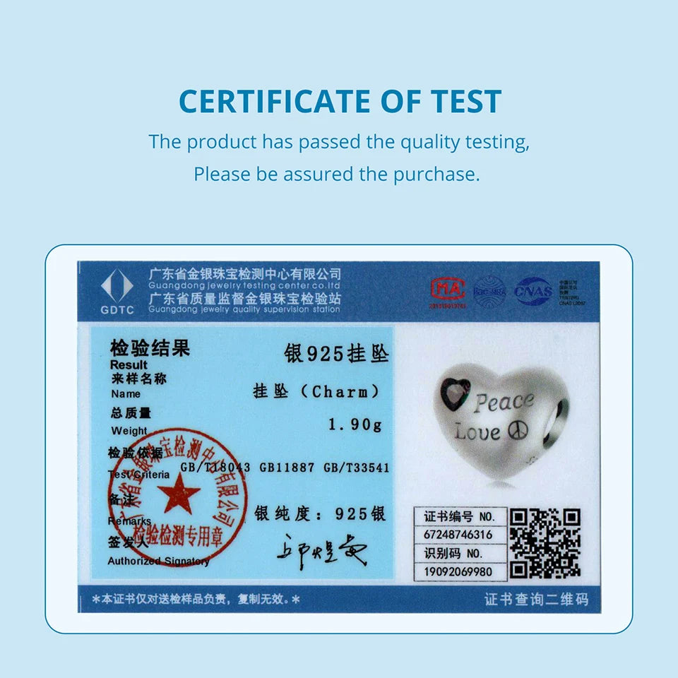 BAMOER 925 Sterling Silber Herzförmiger Peace and Love Charm Bead passend für Original-Armband DIY Bamoer Charm zur Schmuckherstellung