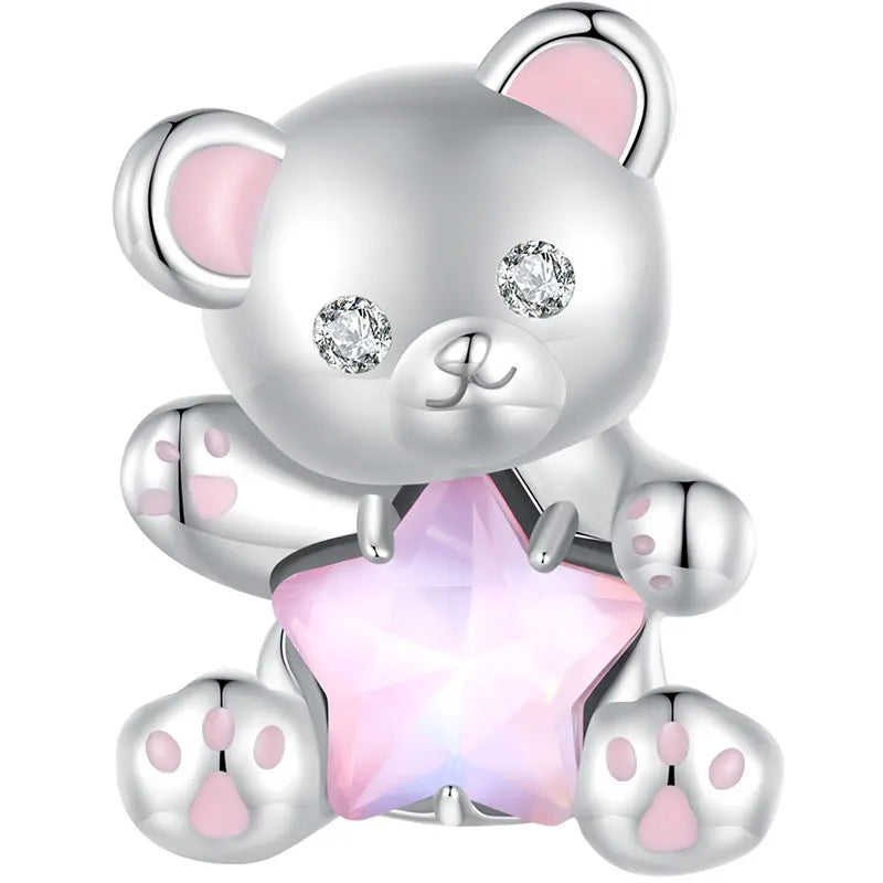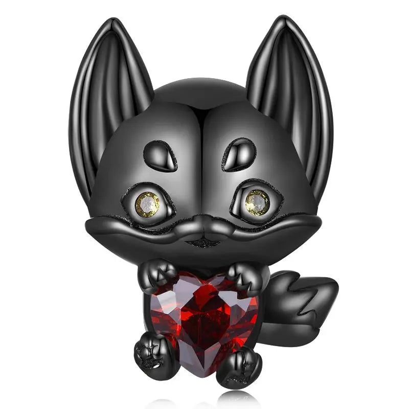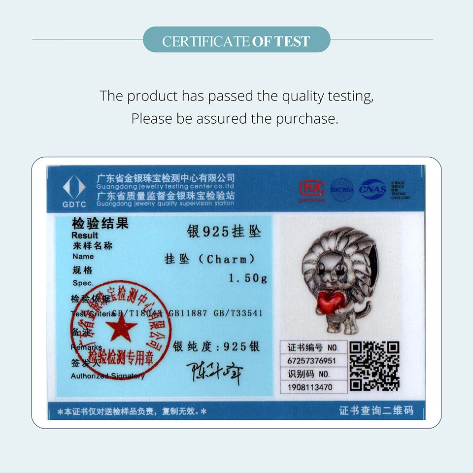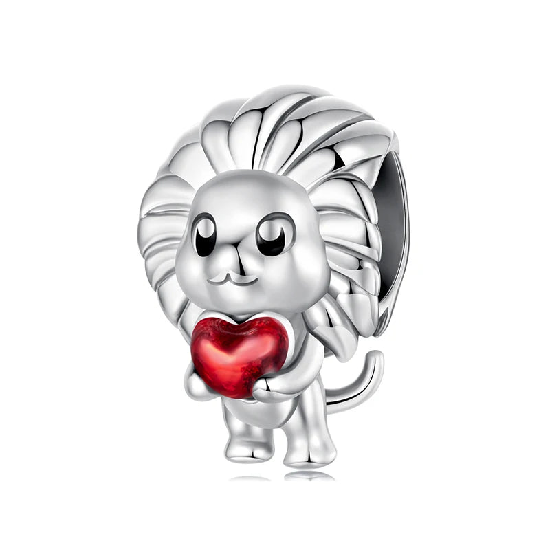 Bamoer Löwenanhänger aus 925er Sterlingsilber mit rotem Herz und Zirkonia-Perlen – niedliche Tierperlen für Damenarmbänder, DIY-Geschenkidee