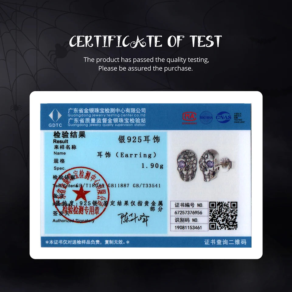 BAMOER 925 Sterling Silber Totenkopf- und Spinnenohrstecker für Damen, oxidierte Halloween-Ohrringe im Vintage-Stil mit Zirkonia