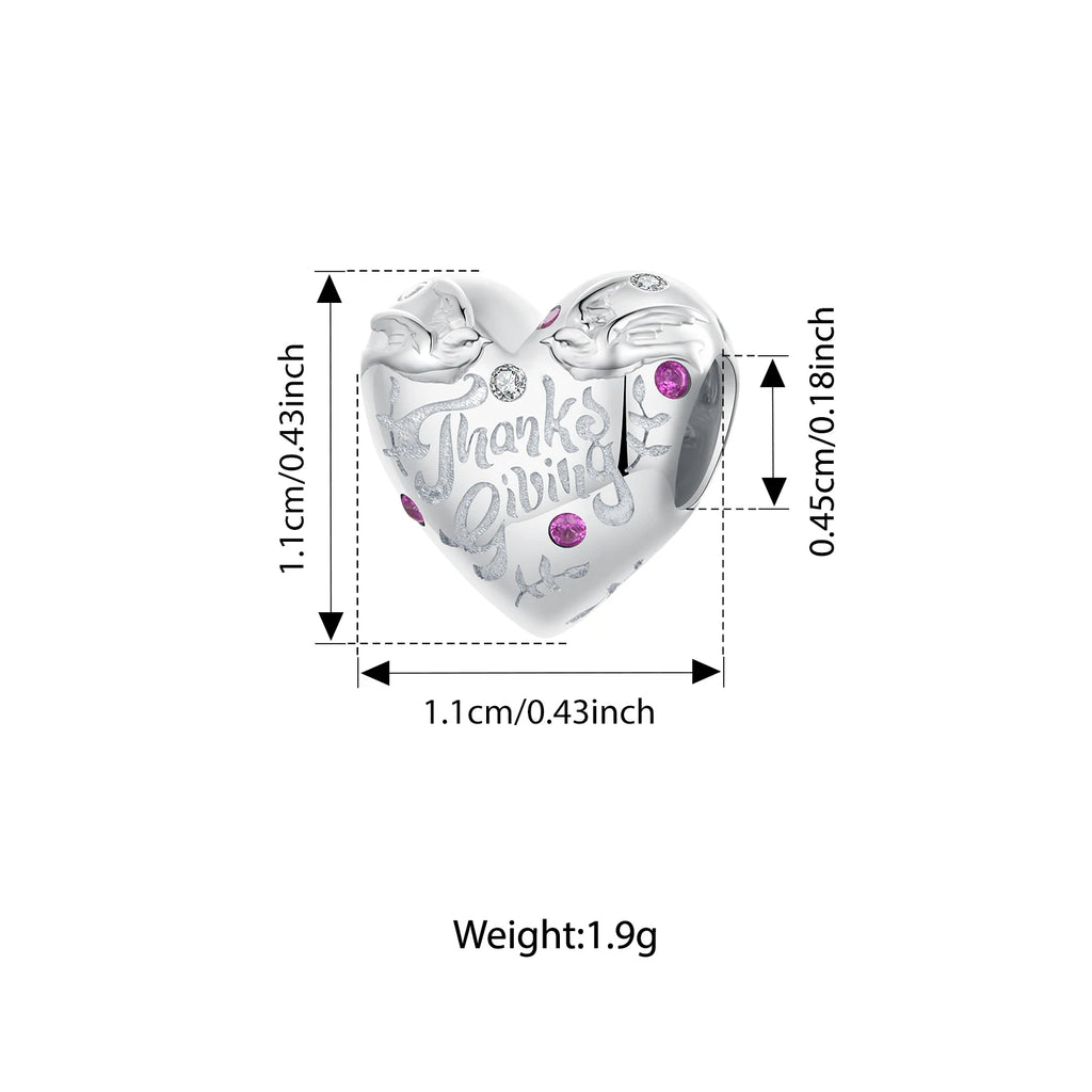 Bamoer 925 Sterling Silber Thanksgiving Truthahn Anhänger mit roten Herzperlen für Damen Armband Accessoires DIY Weihnachtsgeschenk