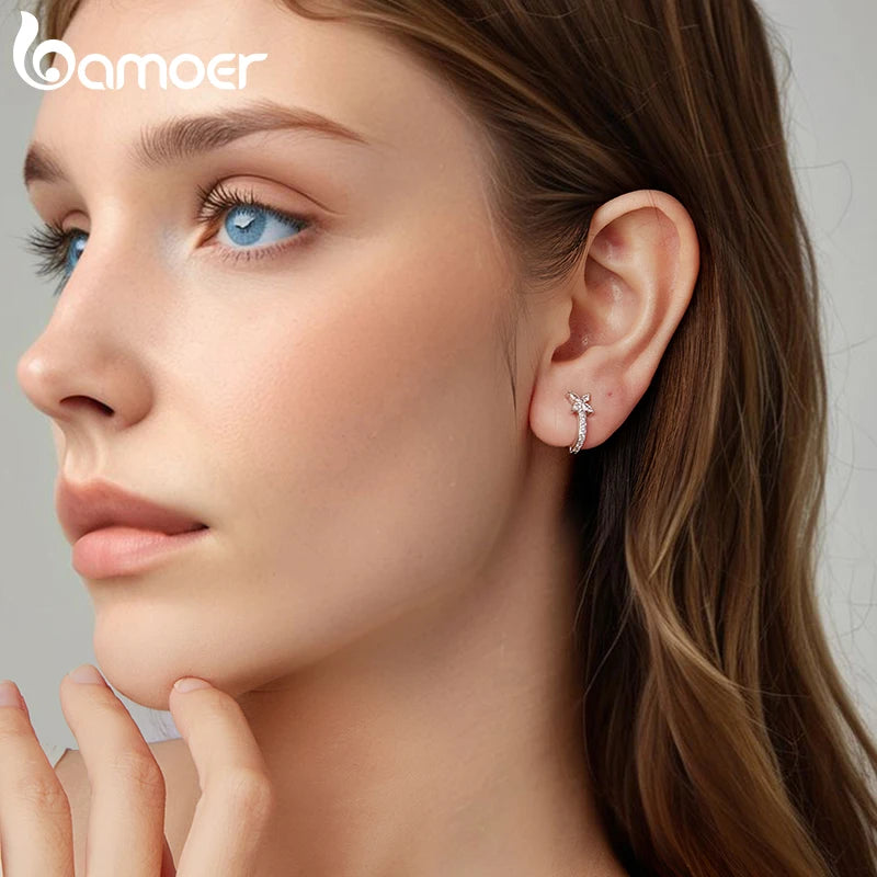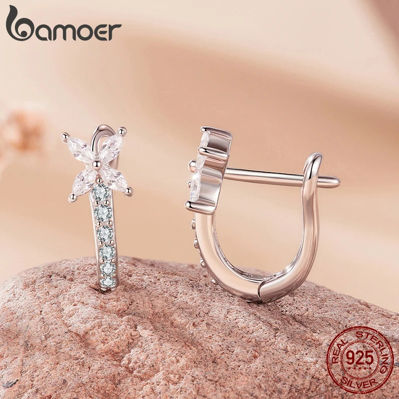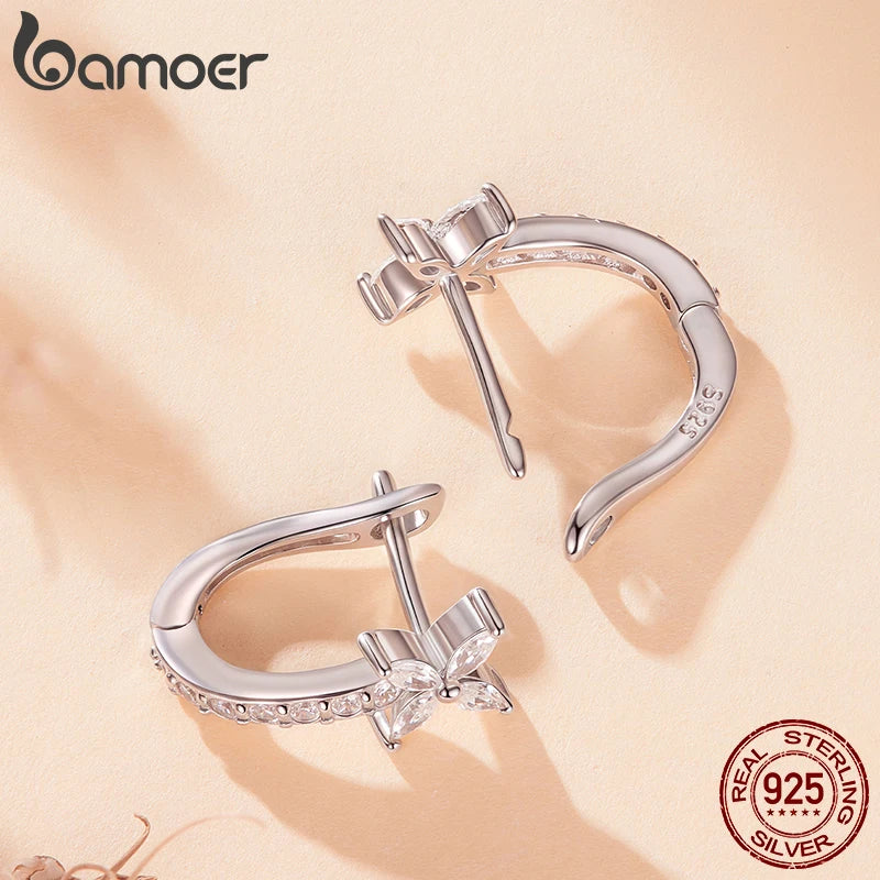 BAMOER Ohrringe in U-Form mit Herbstblättern, besetzt mit Zirkonia-Kleeblatt, romantischer Verlobungsschmuck
