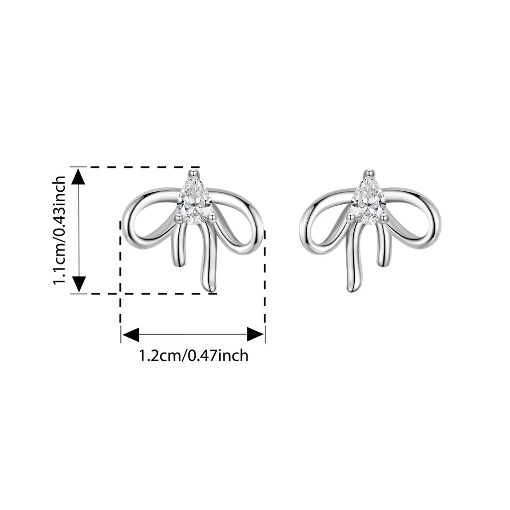 BAMOER Schleifen-Ohrstecker mit Zirkonia, romantische Schleifen-Ohrhänger für Damen und Mädchen, schlichte Ohrringe, ideal als Geburtstagsgeschenk, 925er Sterlingsilber