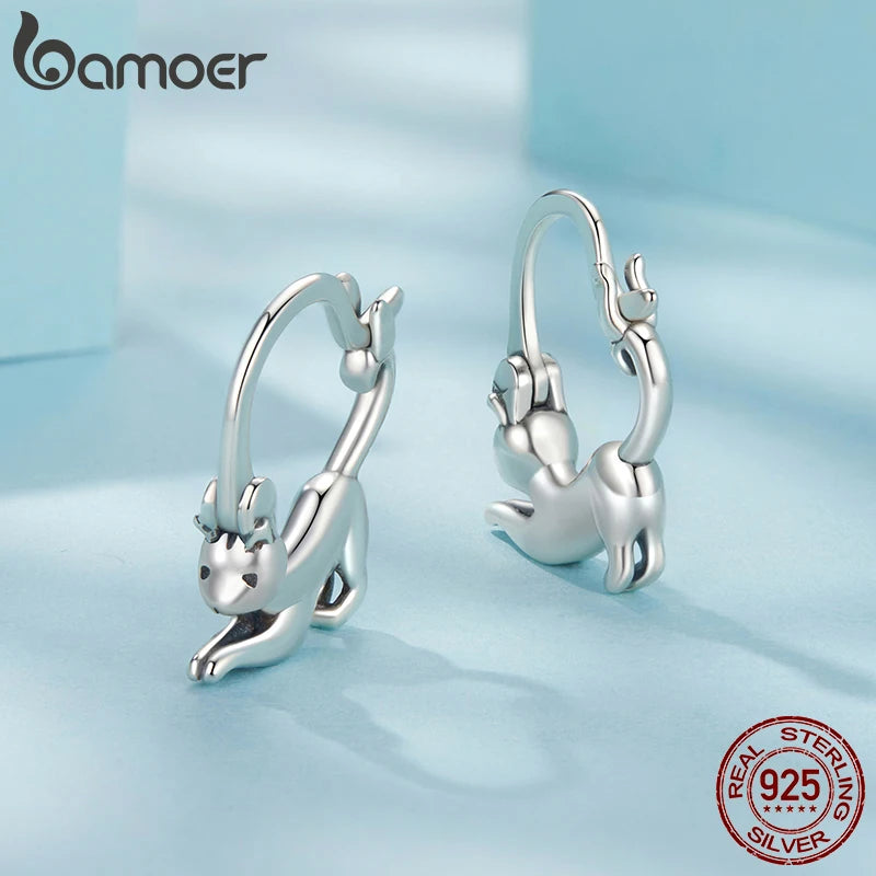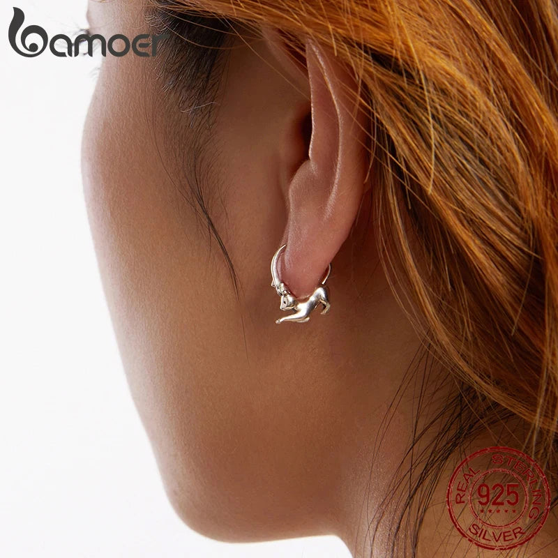 BAMOER Niedliche Katzenohrringe aus 925er Sterlingsilber – Kleine Katzenohrringe – Huggie-Creolen – Schmuckgeschenk für Frauen, Teenager und Katzenliebhaberinnen