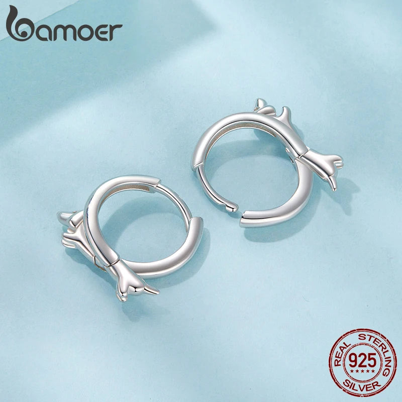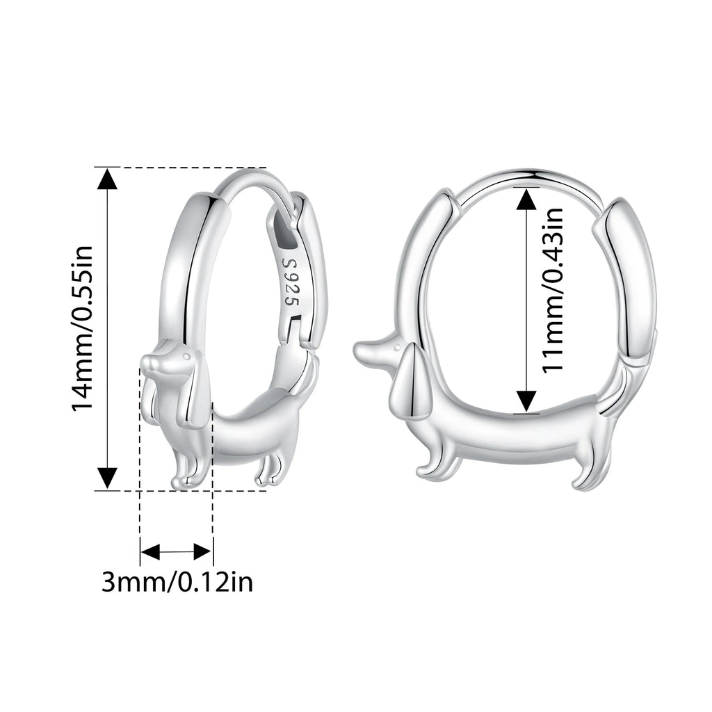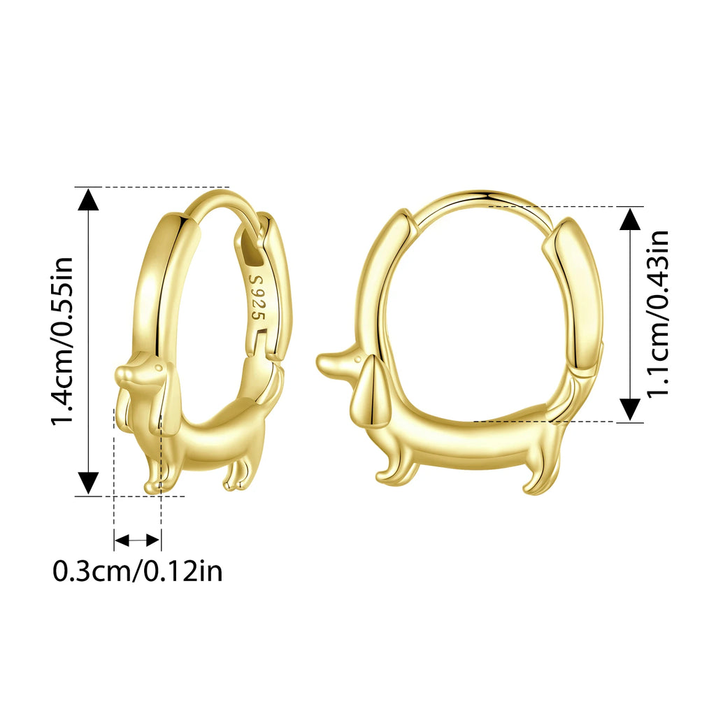 BAMOER Dackel-Ohrringe mit Creolen, Hundeohrringe, 925er Sterlingsilber, hypoallergen, Geschenkidee für Frauen
