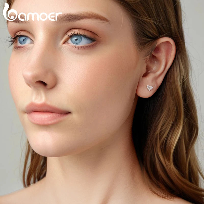 BAMOER Funkelnde, polierte Herzohrstecker, glänzende Schuppenohrringe für gestochene Finger, Damen und Mädchen, glitzernder Schmuck, Modeaccessoires