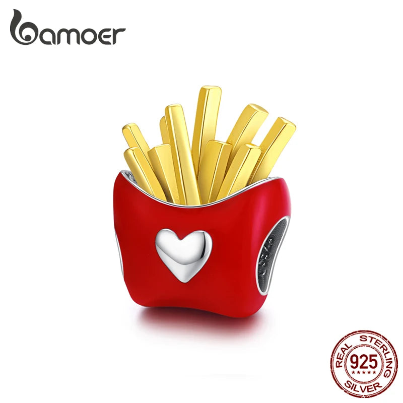 Bamoer Köstliche Pommes Metall Perlen Sterling Silber 925 Emaille Charme fit Original Silber Armband DIY Schmuck machen SCC1606