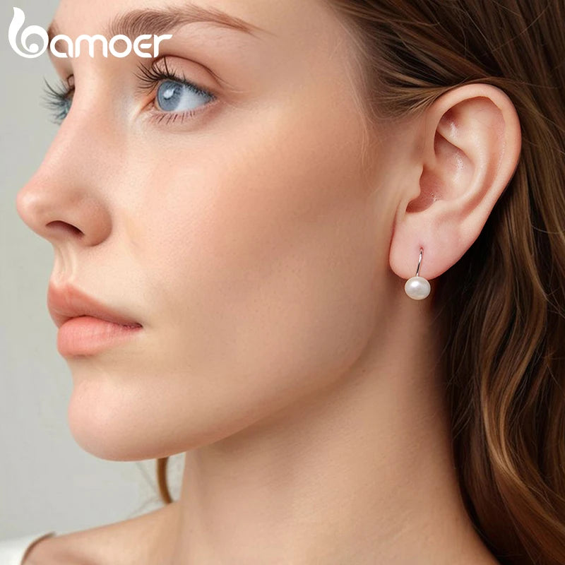 Bamoer Süßwasserperlen-Creolen, Statement-Ohrringe mit Klappverschluss, Huggies-Ohrringe für elegante Damen, 925er Sterlingsilber, feiner Schmuck