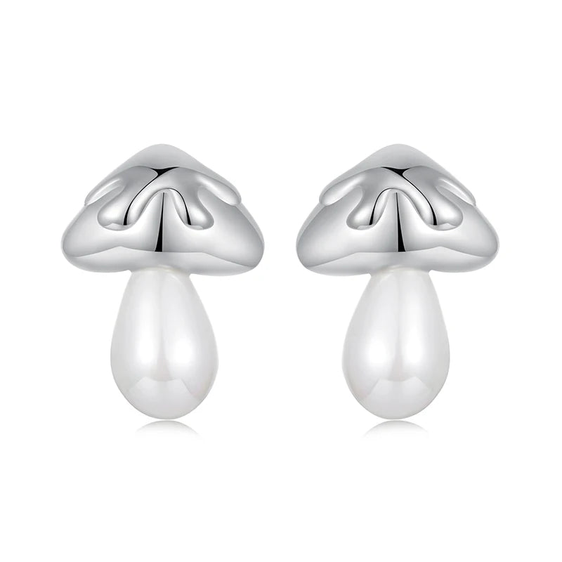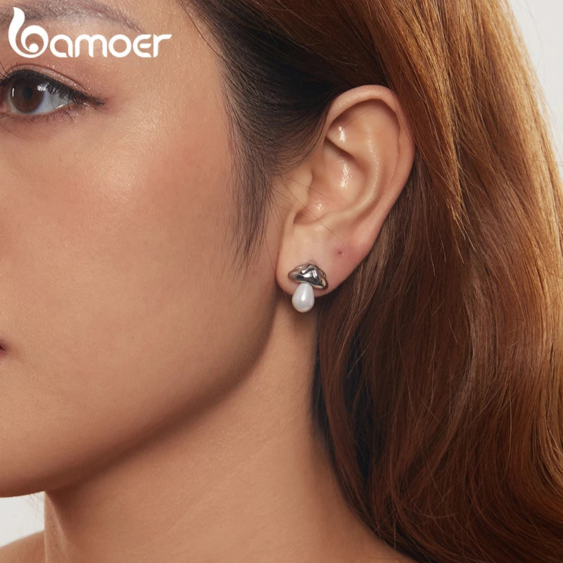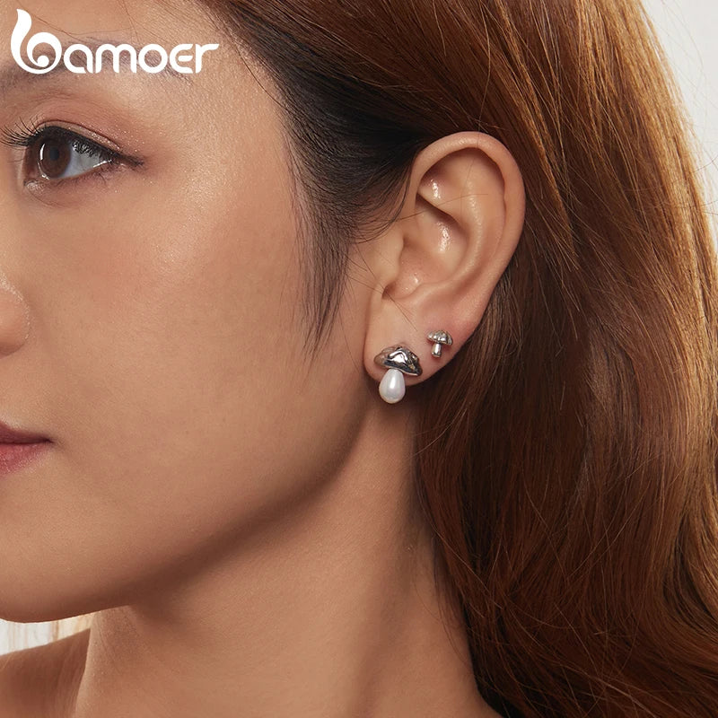 BAMOER Ohrstecker mit Süßwasserperlen und Pilzen, hypoallergenes 925er Sterlingsilber, zierliche, süße Ohrringe für Frauen, SCE1819