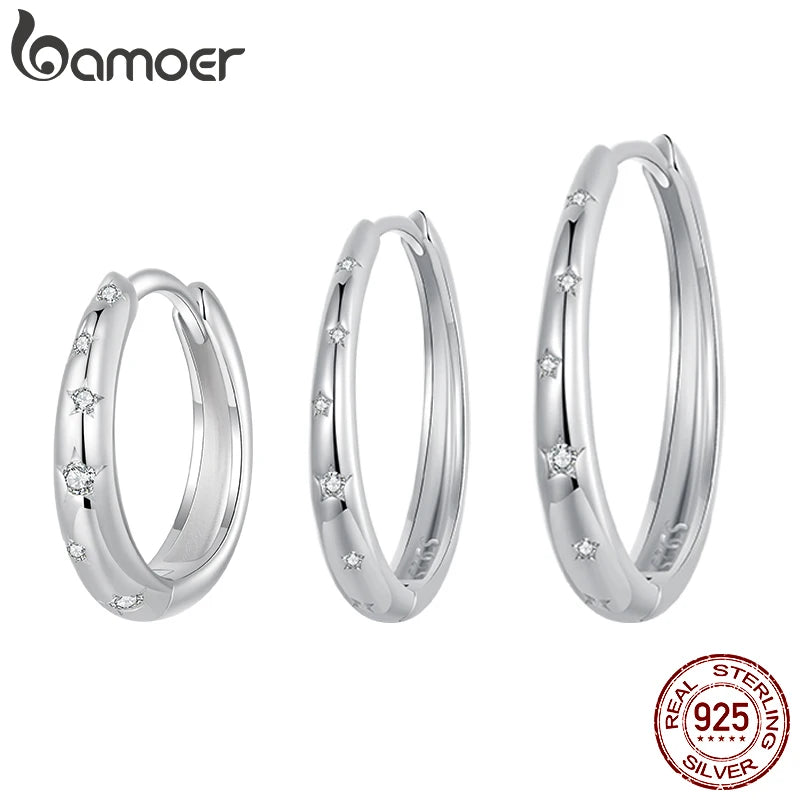 BAMOER Creolen aus echtem 925er Sterlingsilber mit Sternenmotiv, Pavé-Fassung, CZ-Stern, für Damen, für den täglichen Gebrauch, edler Schmuck