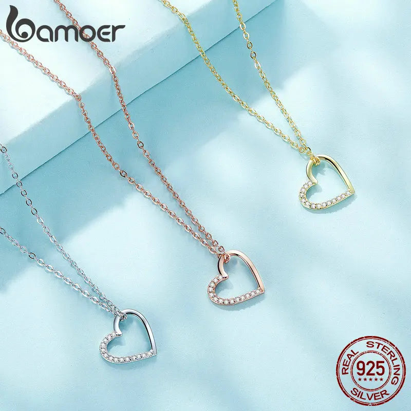 BAMOER Halskette aus echtem 925er Sterlingsilber in Liebesform für Damen, vergoldete Herzkette in 3 Farben, 46 cm