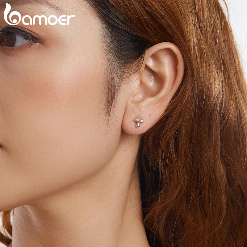 BAMOER Hypoallergene Ohrstecker im Pilz-Design aus 925er Sterlingsilber, zierliche, süße Ohrringe für Damen, SCE1818