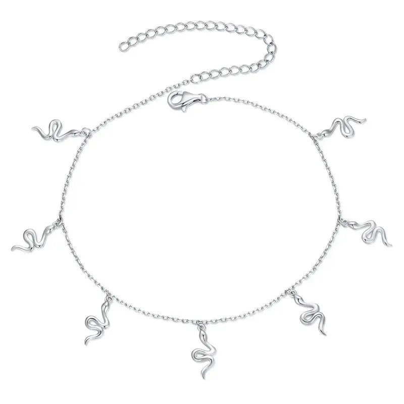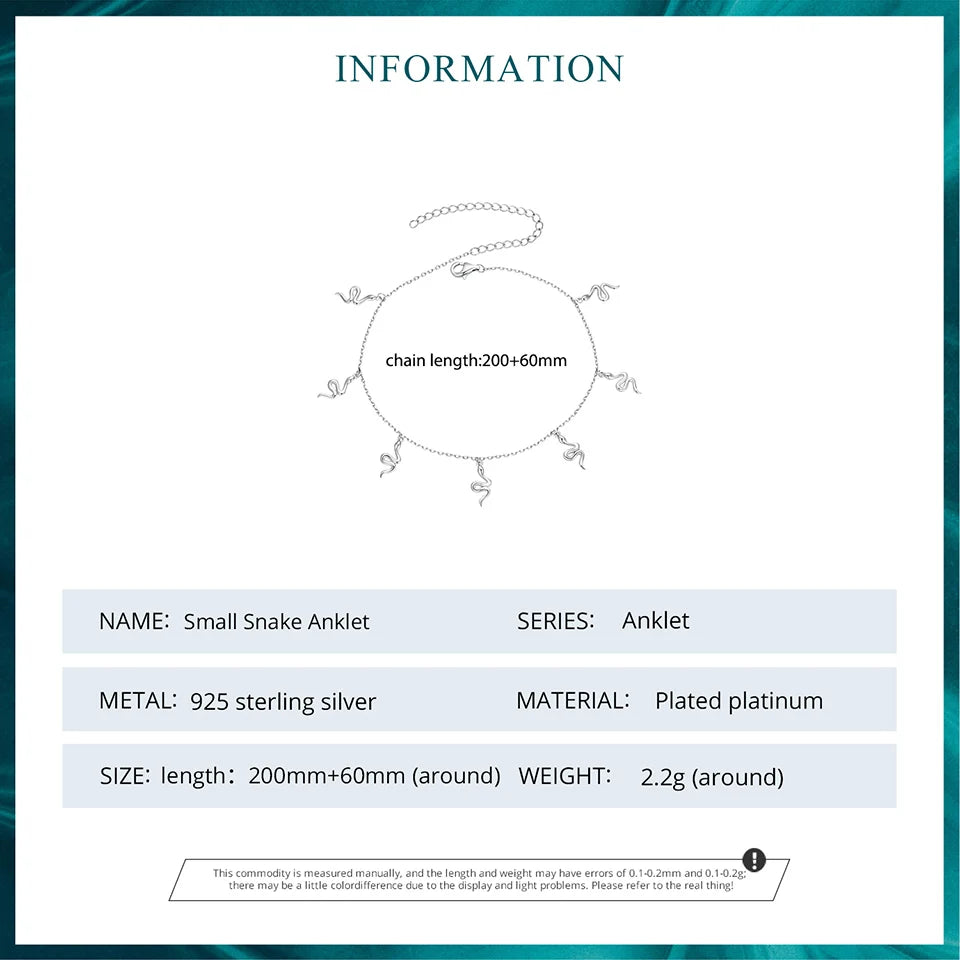 Bamoer Fußkettchen mit Schlangenanhänger aus echtem 925er Sterlingsilber, schlichter Fußschmuck für Frauen, platinbeschichtet, trendiger Sommerschmuck