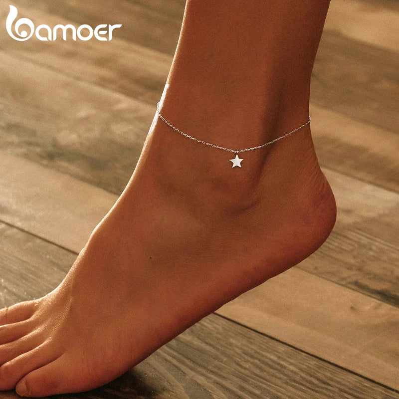Bamoer Einfaches Design Stern Silber Fußkettchen für Frauen Sterling Silber 925 Armband für Knöchel und Bein Mode Fuß Schmuck SCT009