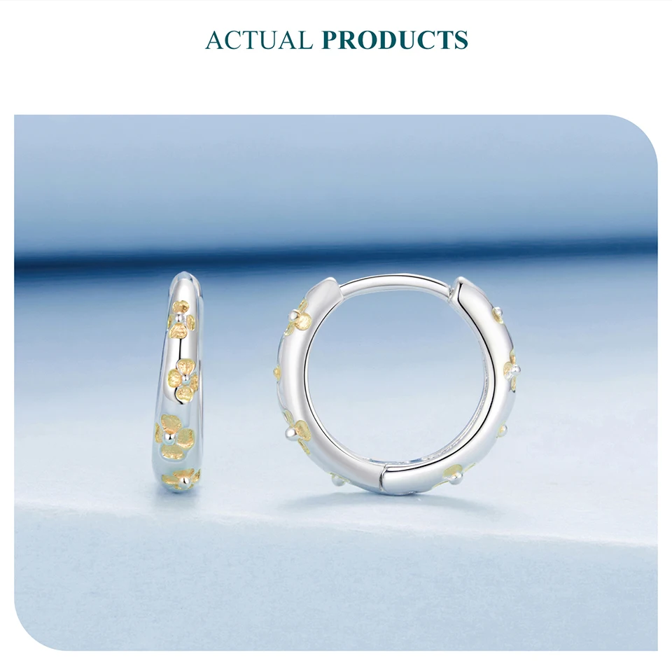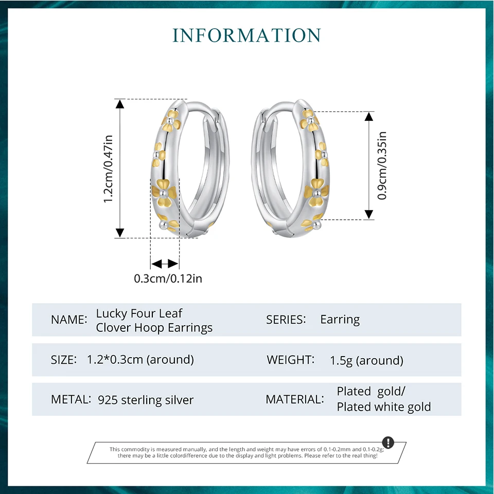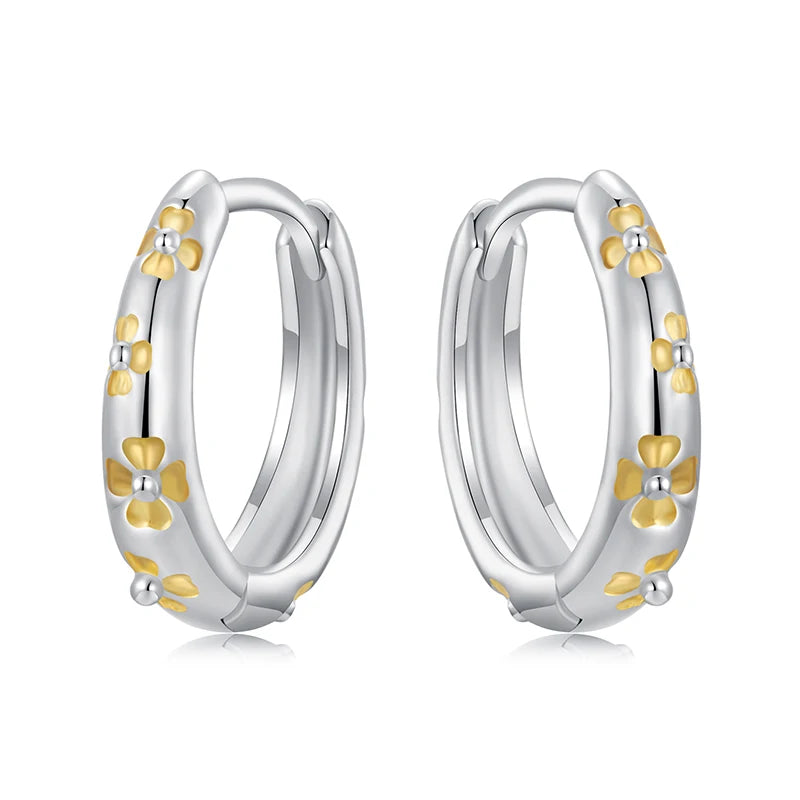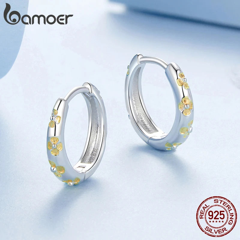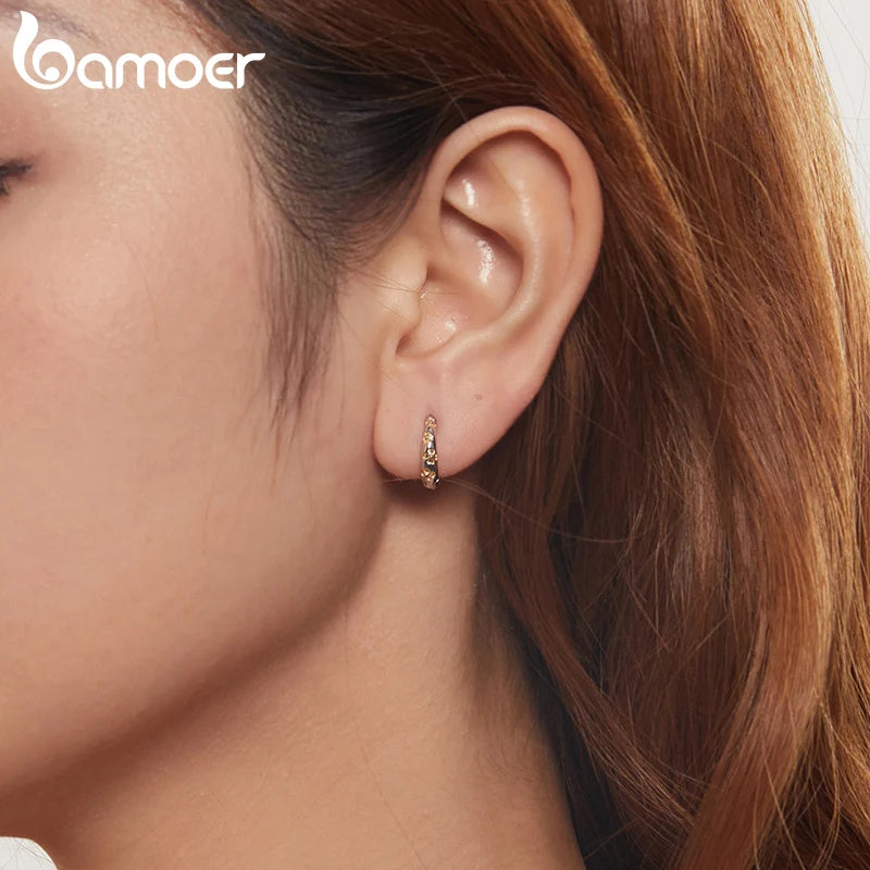 BAMOER Massive 925 Sterling Silber Glücksklee-Ohrringe, kleine geometrische Creolen für Frauen BSE1121