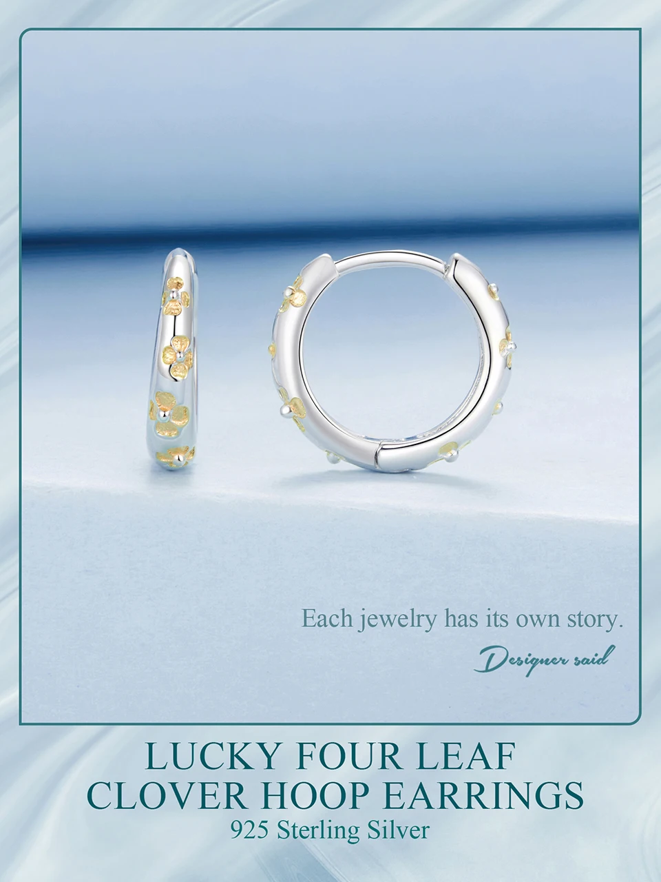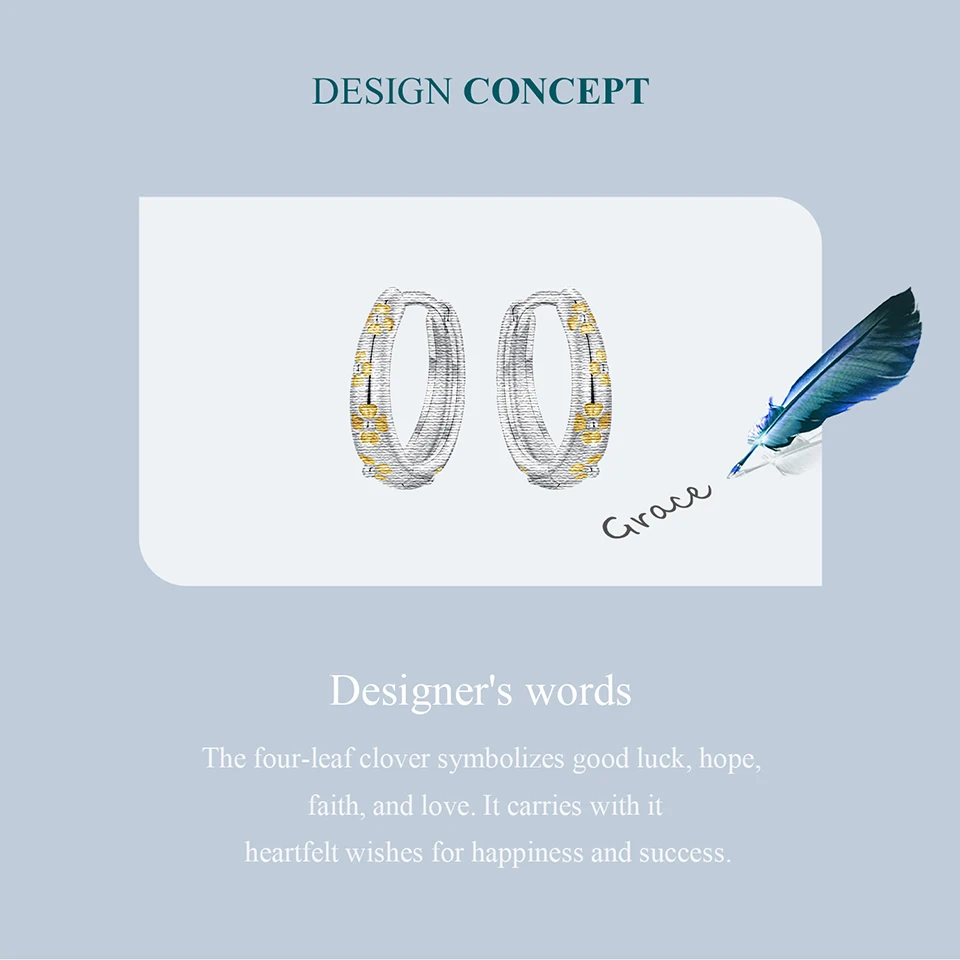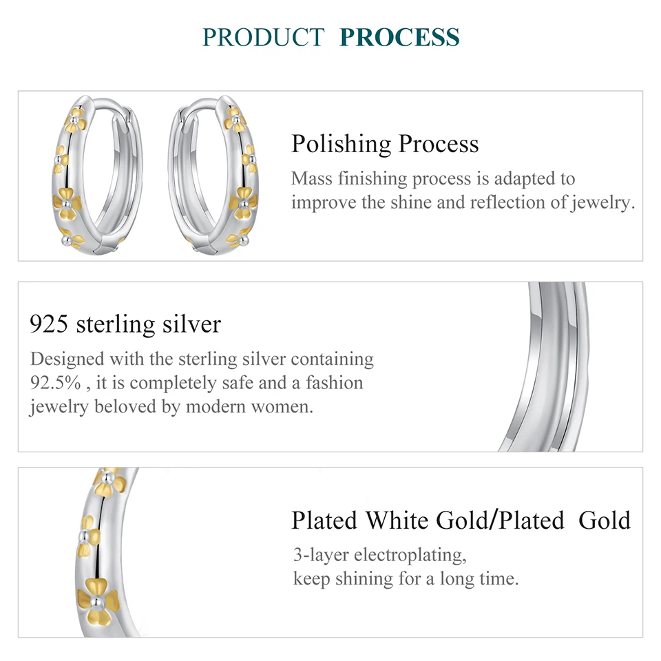 BAMOER Massive 925 Sterling Silber Glücksklee-Ohrringe, kleine geometrische Creolen für Frauen BSE1121