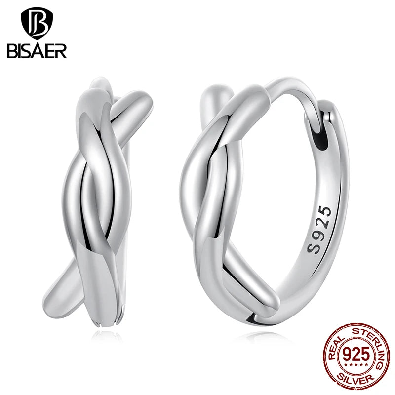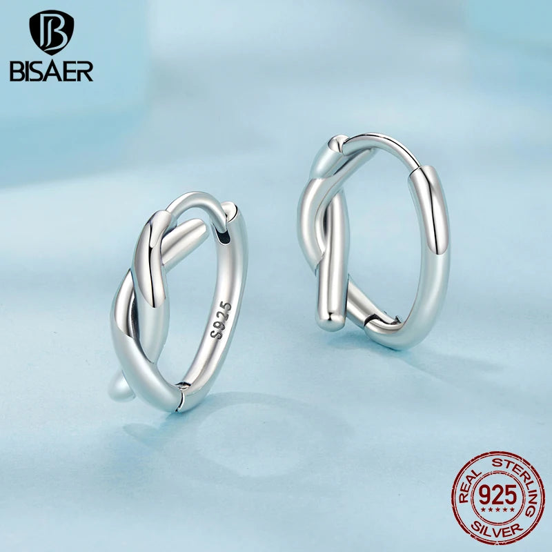 BISAER 925 Sterling Silber Twisted Hoop Ohrringe Runde Klassische Hypoallergen Ohr ClipFür Frauen Party Original Edlen Schmuck Geschenk