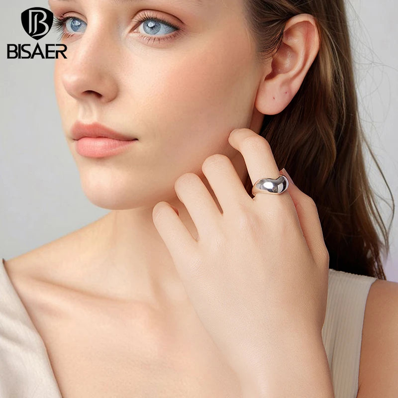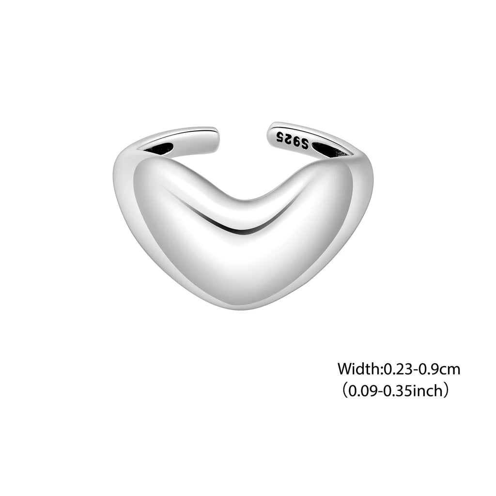 BISAER Solid 925 Sterling Silver Heart Open Ring Metal Statement Band Adjustable Size 5-9 for OL Women Party Fine Jewelry EFR679