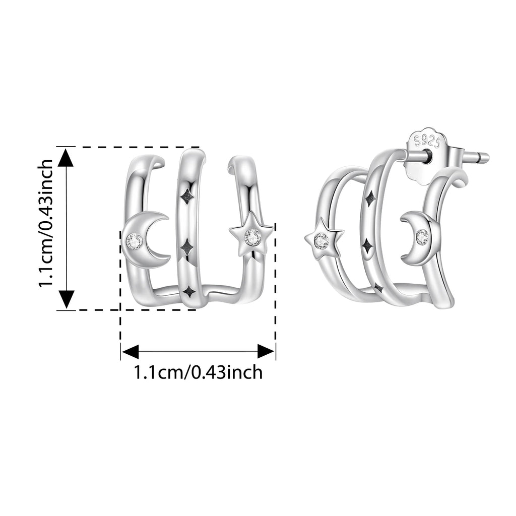 BISAER Solid 925 Sterling Silver Multi-layer Moon Star Earrings Simple Sparkling Zircon Stud Ear for Women Party Fine Jewelry