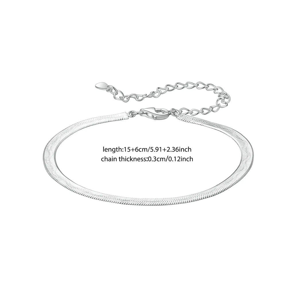 BISAER Wide Snake Bracelet 925 Sterling Silver Dainty Stackable Link Chain Adjustable for Women Trendy Fine Jewelry ECB303