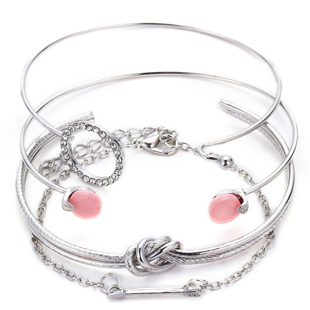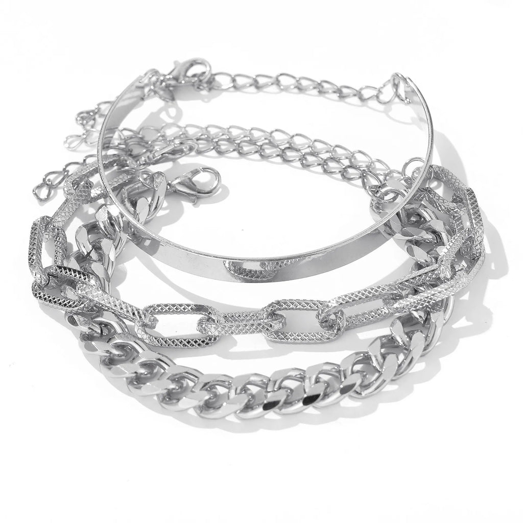 Bohemian Metal Chain Bracelet Set For Women Geometric Gold Color Thick Link Chain Open Bangle Female Fashion Jewelry