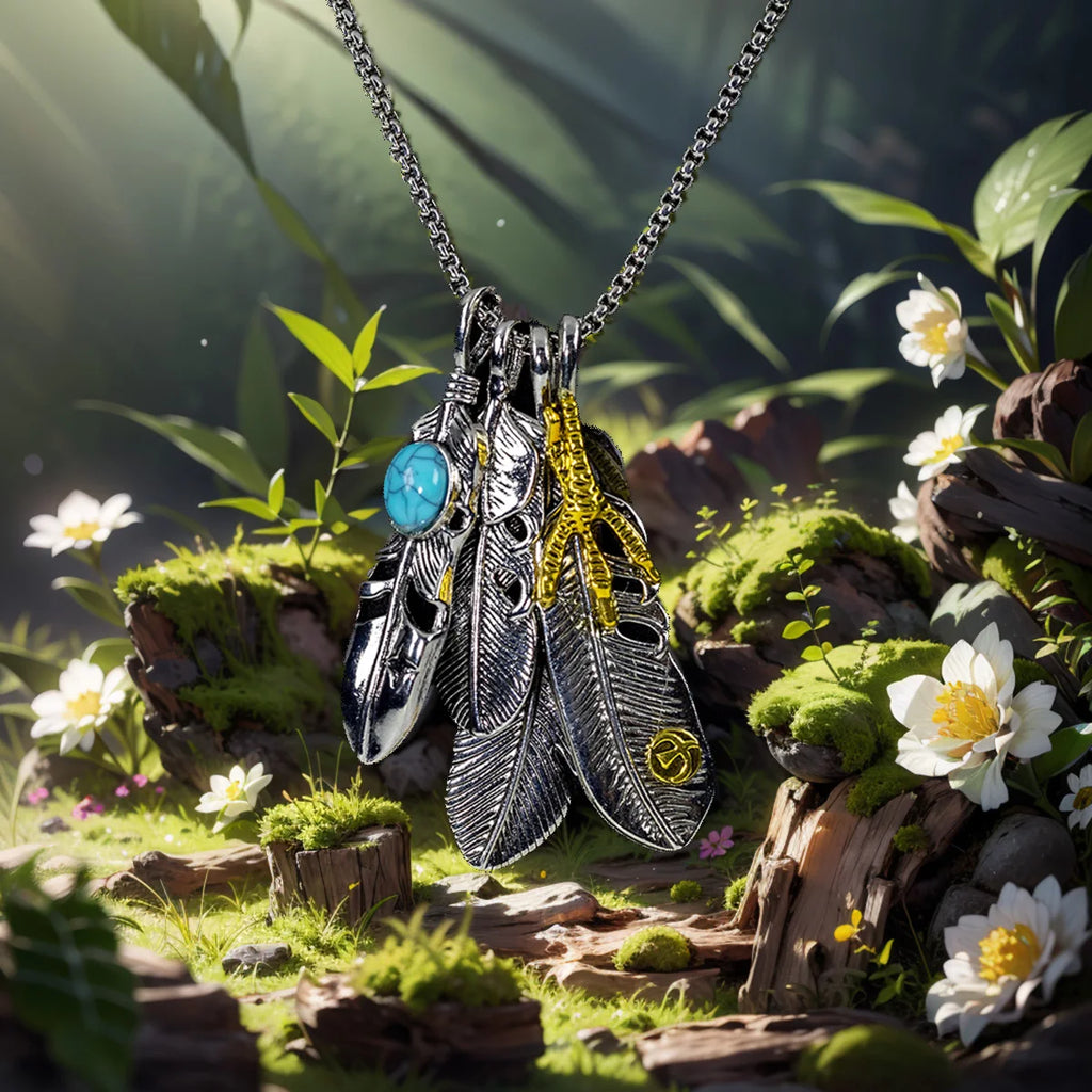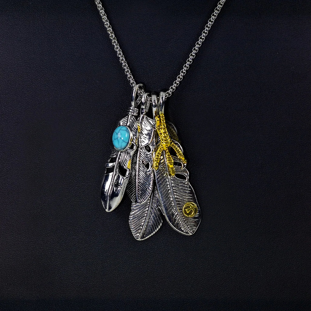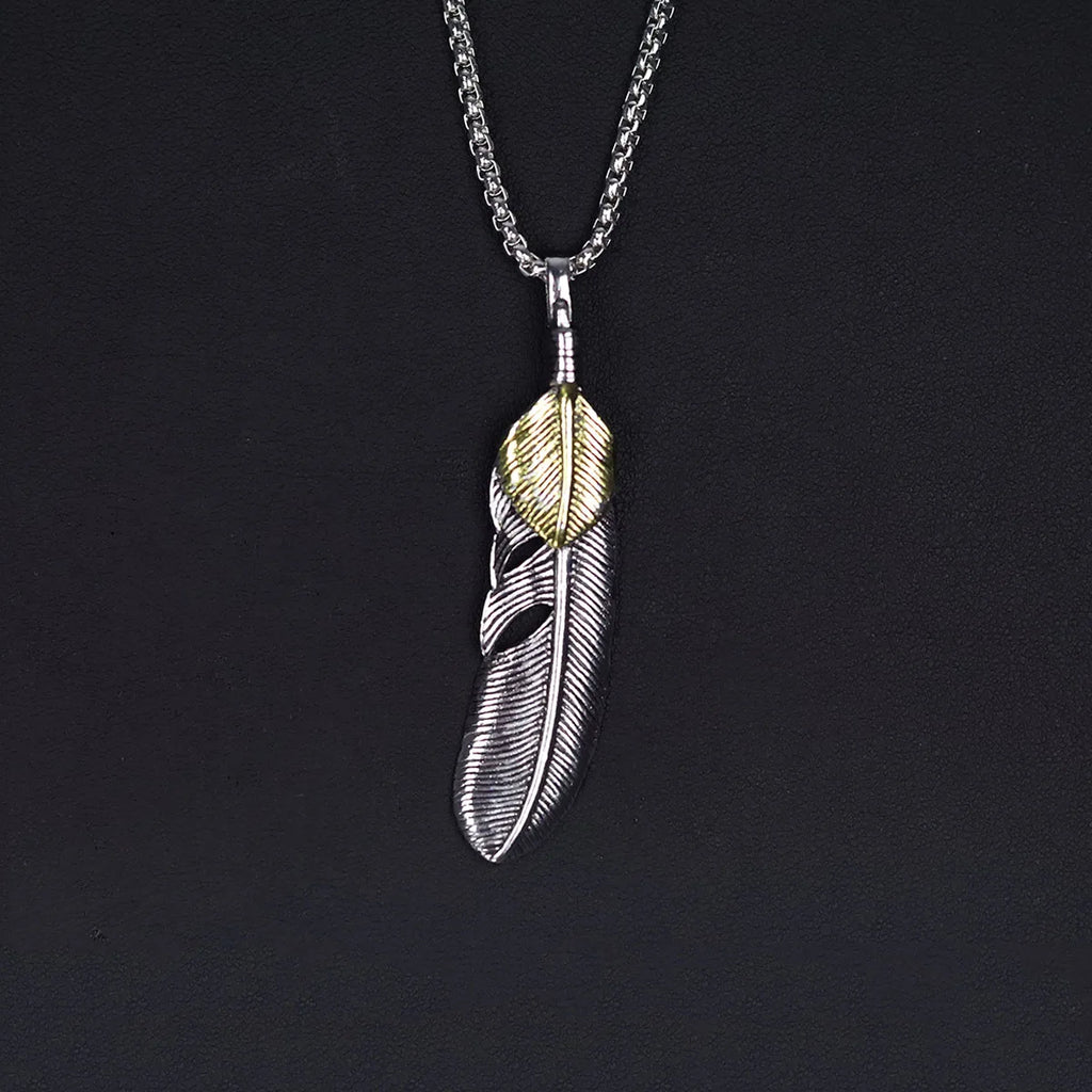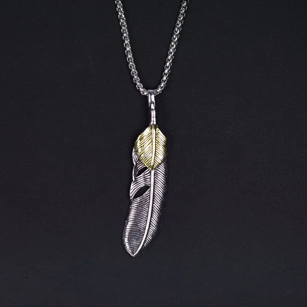 Markenversion von Takahashi-Feder-Anhänger-Halskette für Männer, Flut, Retro-Blätter, lange Pulloverkette, Unisex, Hip-Hop-Schmuck, Großhandel