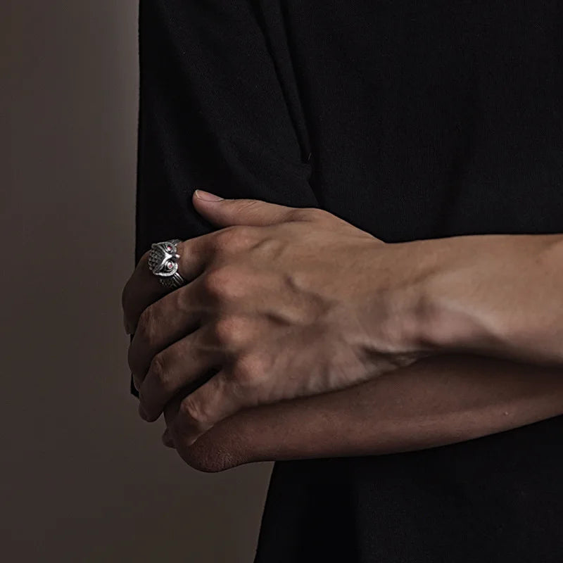 Buyee 925 Sterling Silber Großer Ring Finger Niedliche Eule Offener Ring für Frauen Mann Mode Tier Rock Punk Feiner Schmuck Kreis