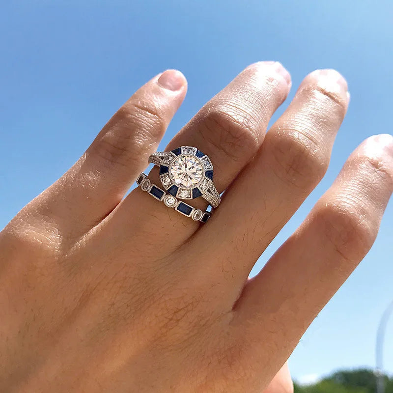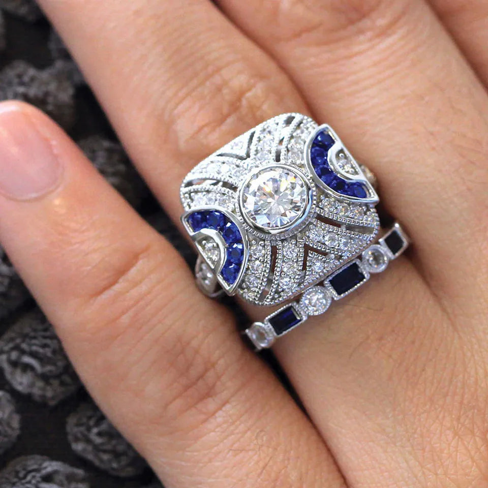 Buyee 925 Sterling Silber Luxus Hochzeit Ring Sets Weiß Zirkon Kristall Ring Finger für Frauen Party Edlen Schmuck Kreis