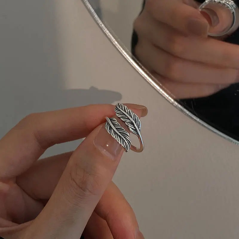 Buyee 925 Sterling Silber Kleiner Ring Finger Ausgezeichnete Feder Süß Offener Ring für Frau Mode Party Feiner Schmuck Kreis Geschenk