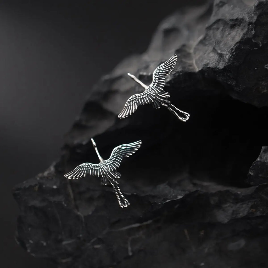 Buyee 925 Sterling Silber Einzigartiger großer Ohrring Ausgezeichneter Kranich-Ohrring für Frau Mann Mode Tier Punk Edler Schmuck Ohrring