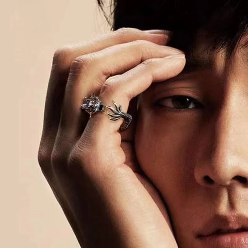 Buyee 925 Sterling Silber Einzigartiger Ringfinger für Damen und Herren, modisch, chinesischer Drache, Tier, Rock, Punk, edler Schmuck, Kreis, mit Box