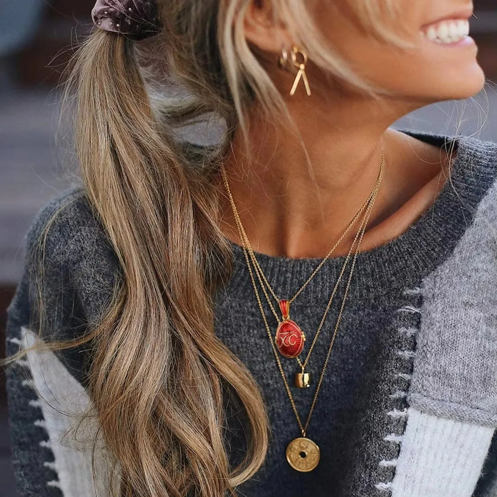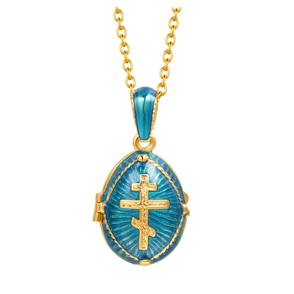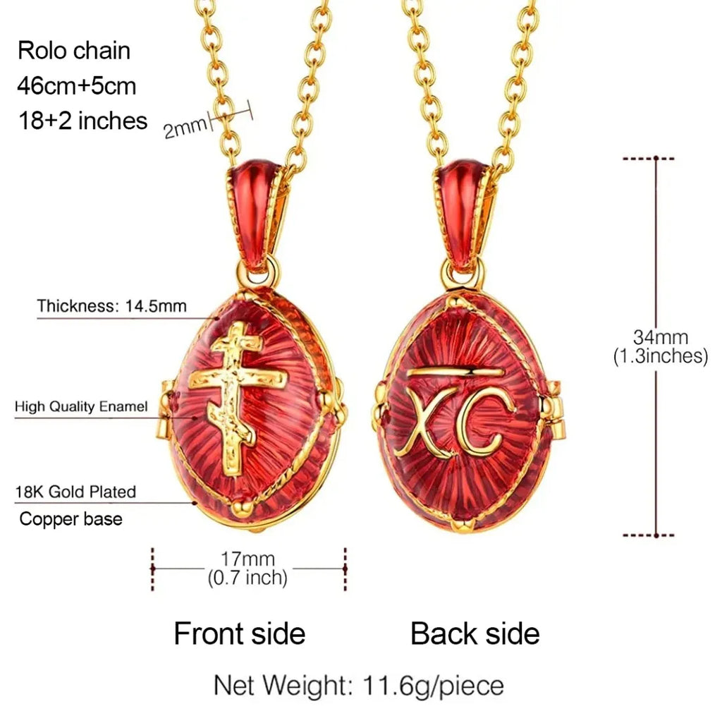 Chainspro Orthodoxe Medaillon-Halsketten mit Kreuz und Ei, oval, für Damen, Anhänger, 45,7 cm Kette, 14 Karat vergoldet, Emaille, Gedenkschmuck für Sie