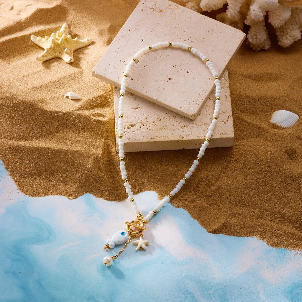 Charm Ceramic Cartoon Fish Pendant Necklace For Women Girls Colorful Rice Beads Starfish OT Buckle Choker Beach Party Jewelry