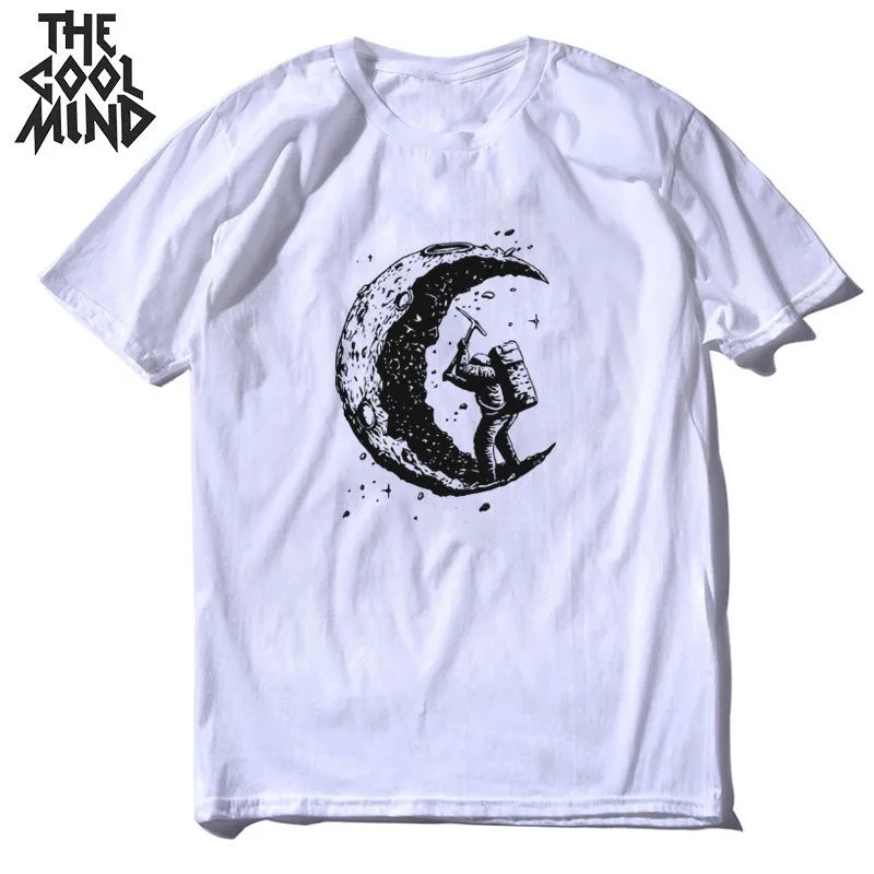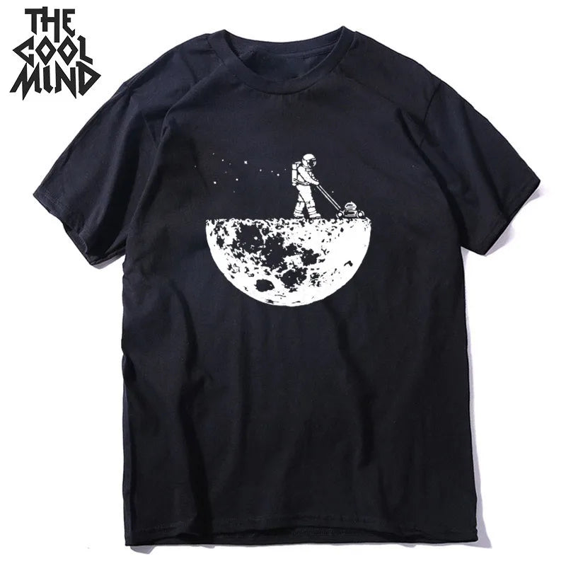 COOLMIND 100% Baumwolle Mond Druck Männer T-Shirt Casual Sommer Kurzarm Männer T-shirt Lose t-shirt Männlichen T-shirts Mo0154