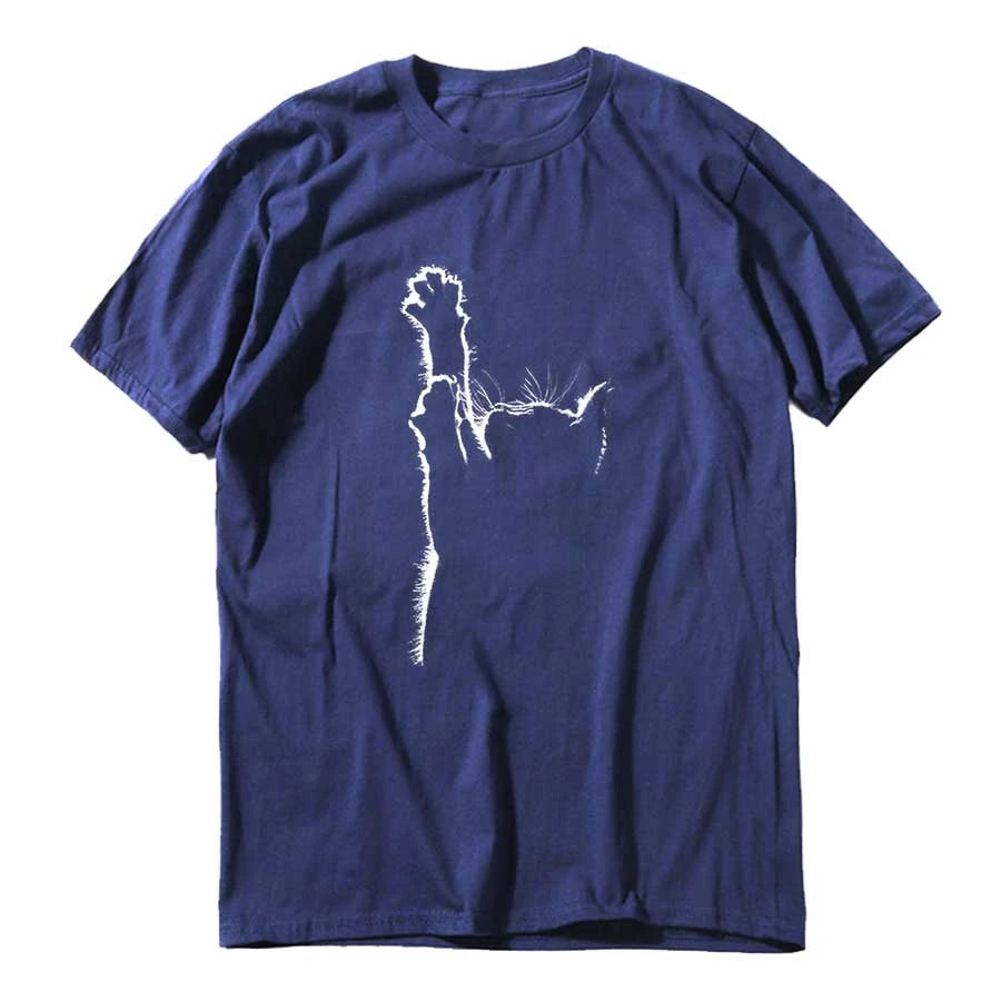 COOLMIND Top-Qualität 100 % Baumwolle mit schönem Katzen-Print für Männer, lässig, lockeres T-Shirt für Männer, O-Ausschnitt, gestricktes T-Shirt für Männer