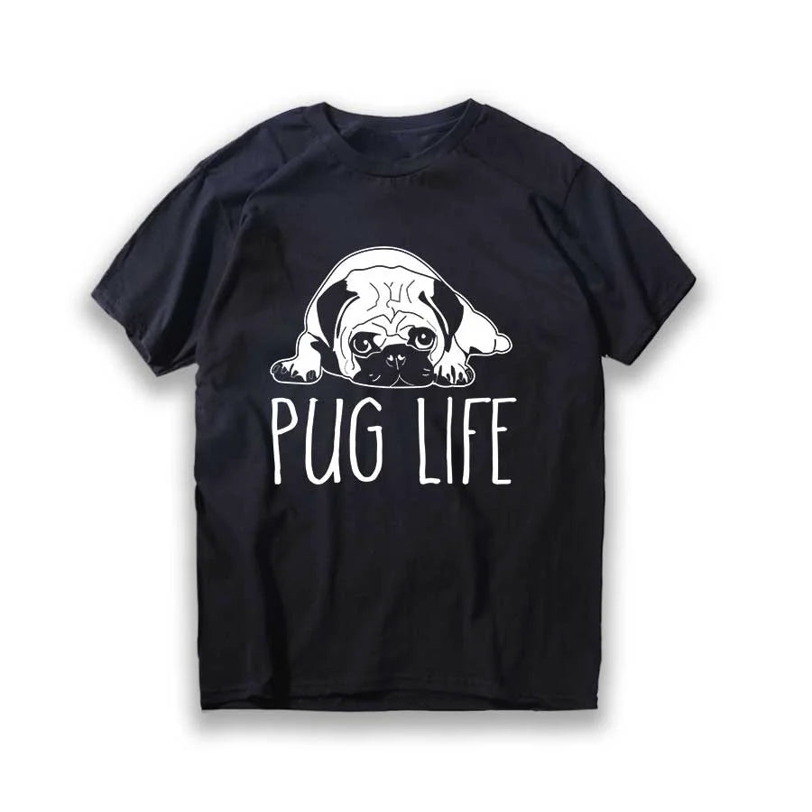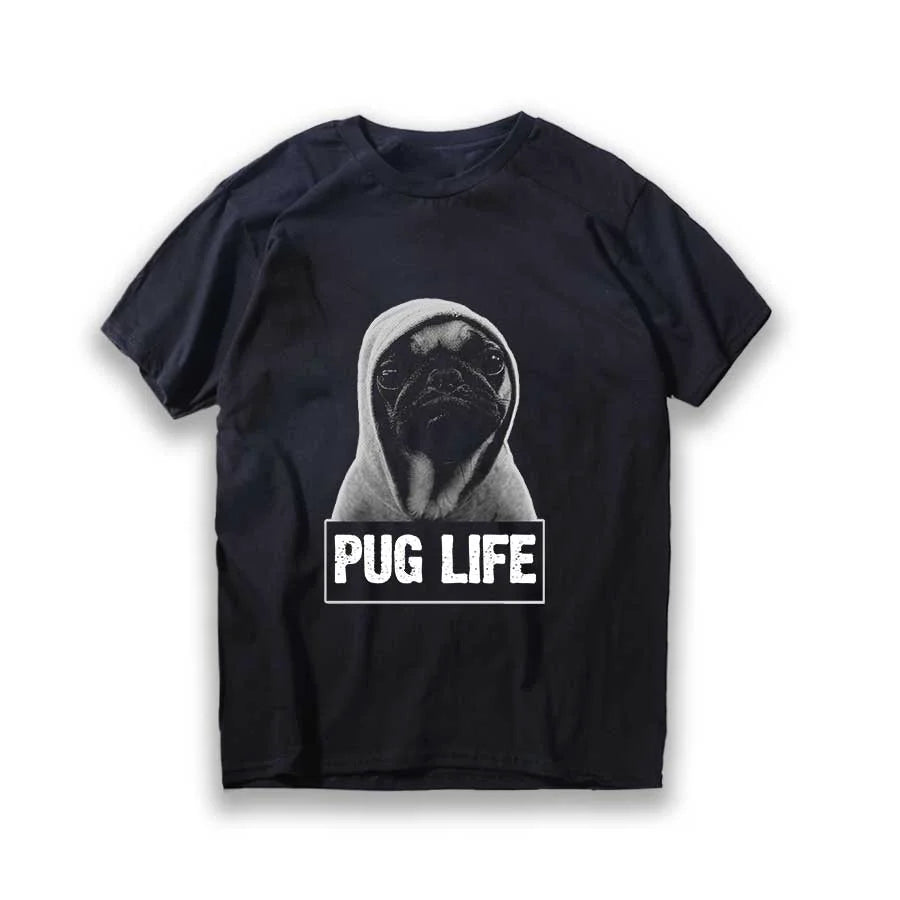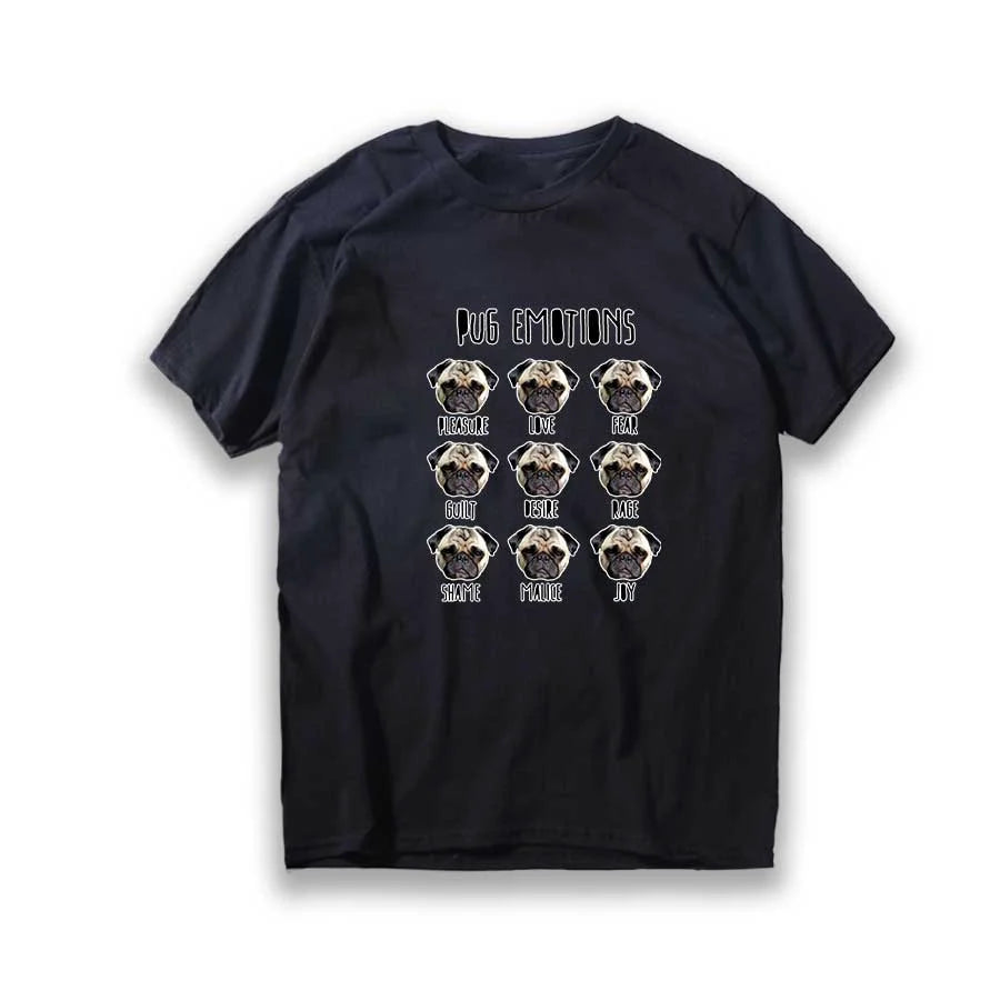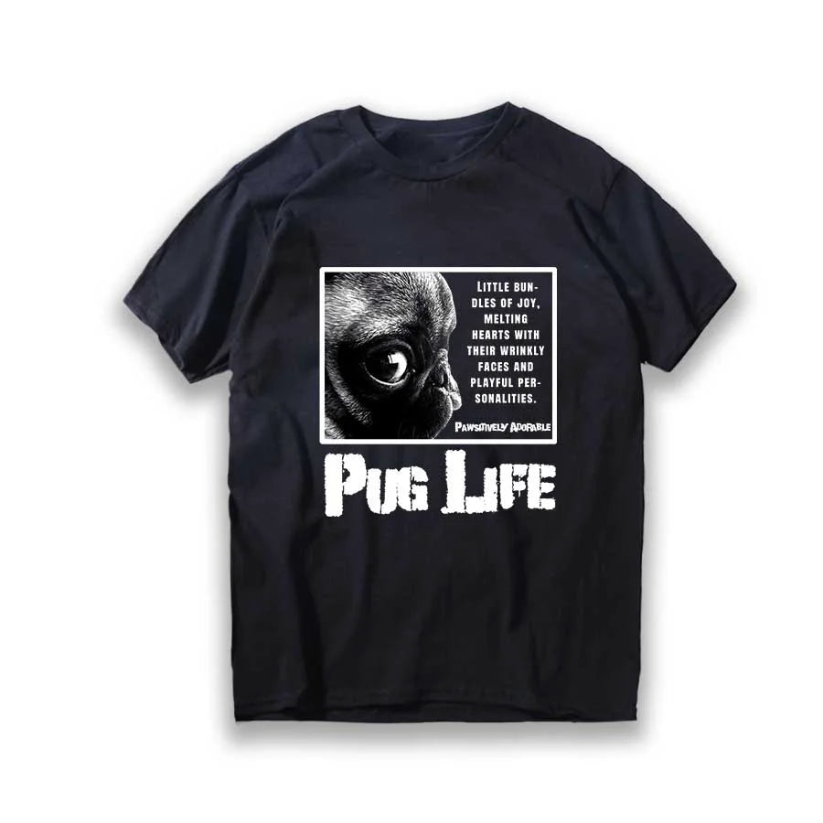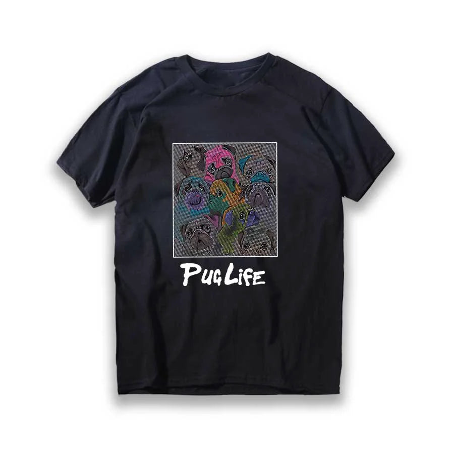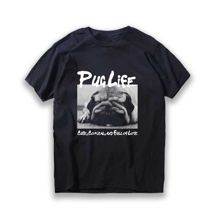 Lustiges T-Shirt aus Baumwolle mit großem Mops-Hunde-Print, großer lustiger Hund, Harajuku, schwarzes Grafik-T-Shirt, schwarzes T-Shirt mit neuartigem Design