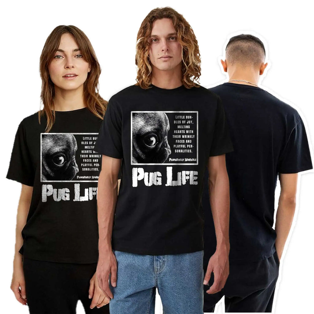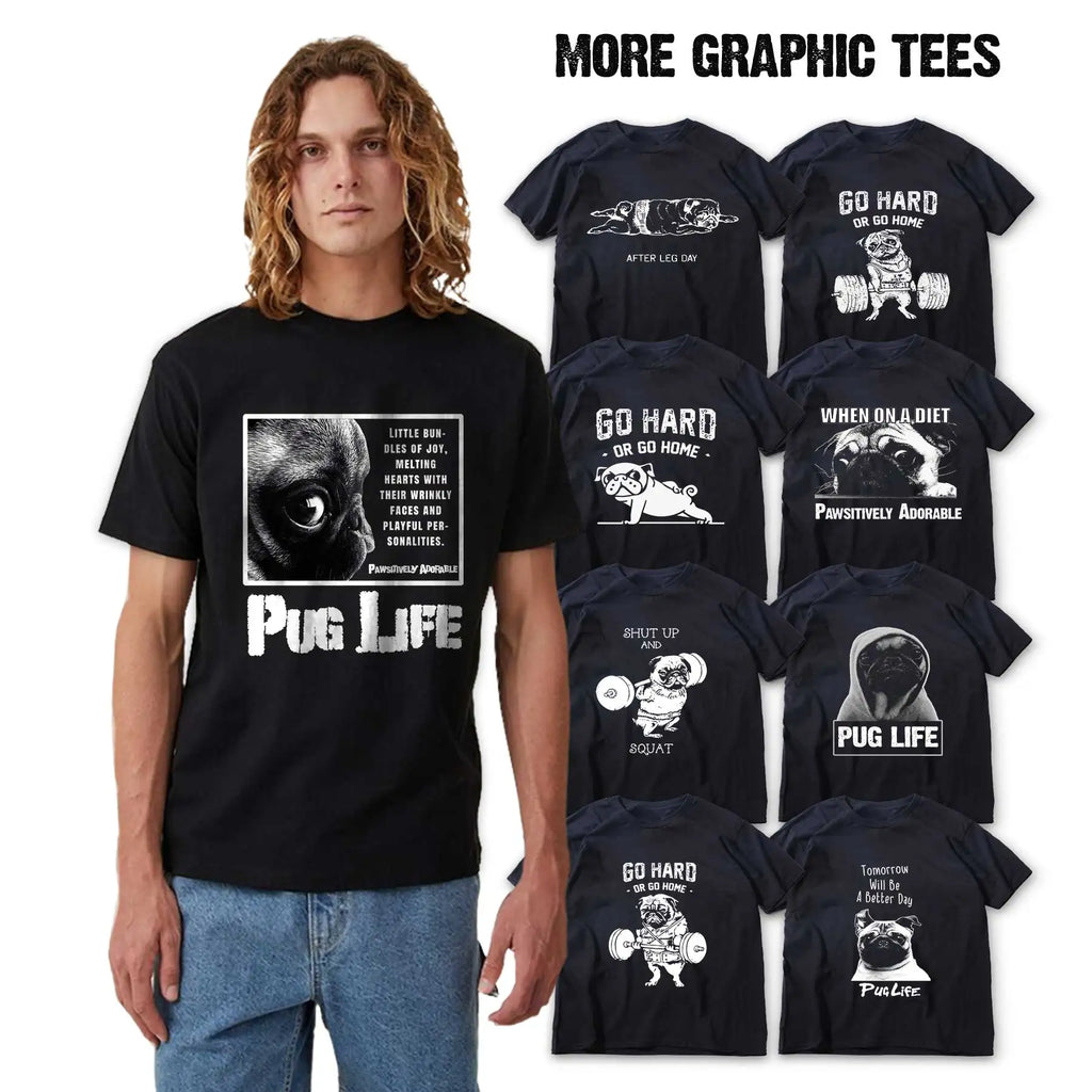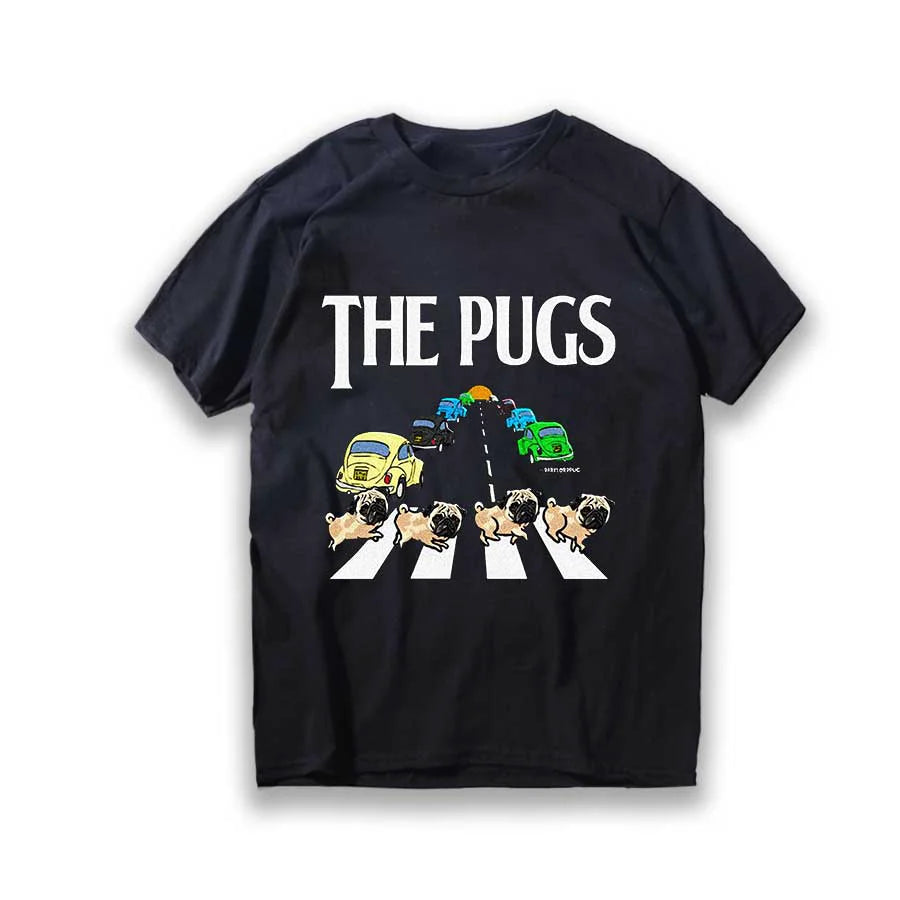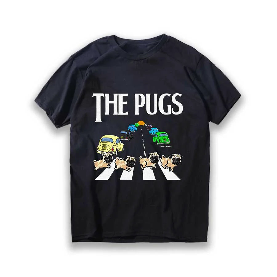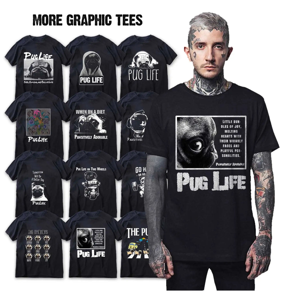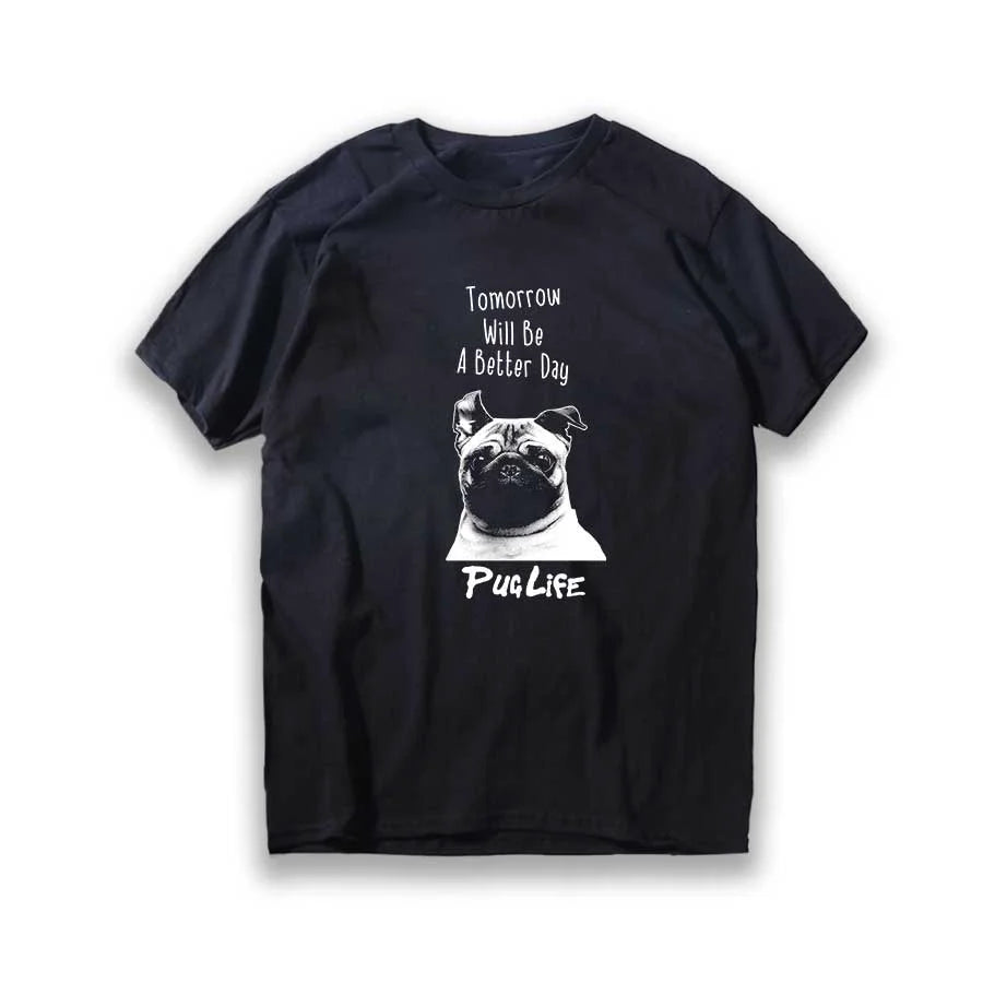 Lustiges T-Shirt aus Baumwolle mit großem Mops-Hunde-Print, großer lustiger Hund, Harajuku, schwarzes Grafik-T-Shirt, schwarzes T-Shirt mit neuartigem Design
