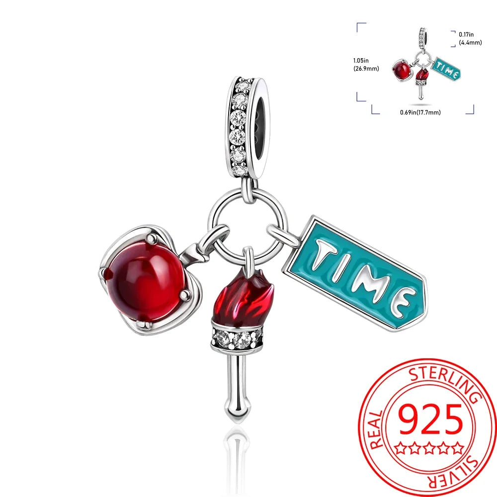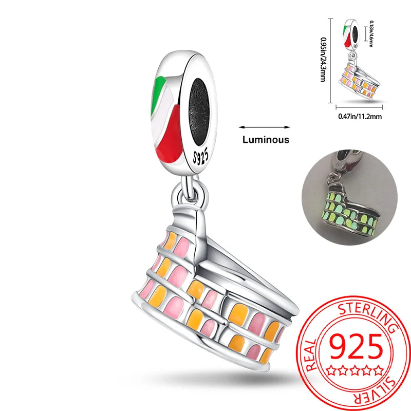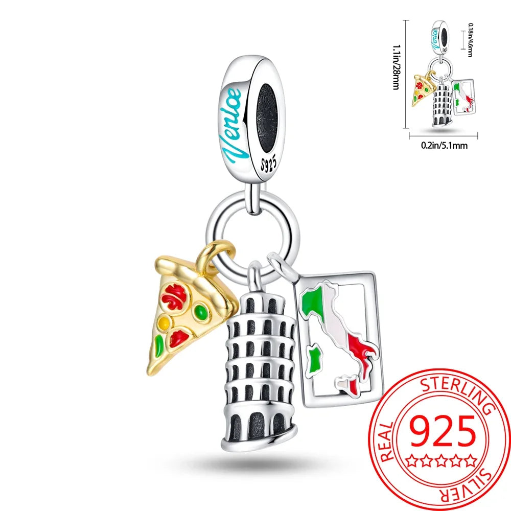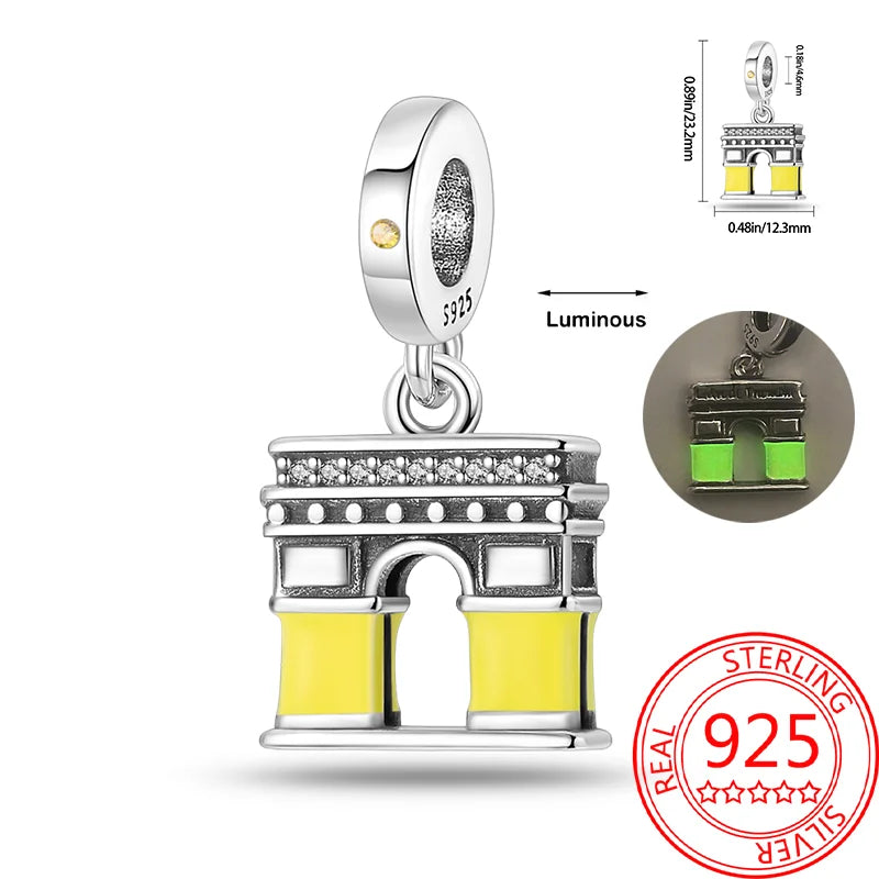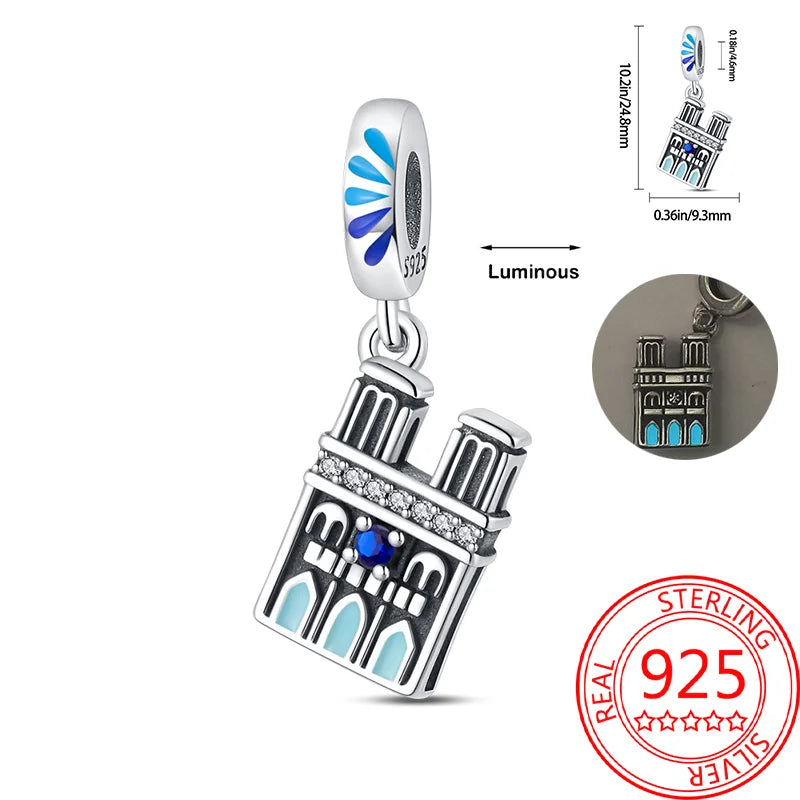 Creative 925 Sterling Silver Eiffel Tower Gold Heart Double Charm Fit DlY Bracelet Necklaces Women's Dating Jewelry Accessories