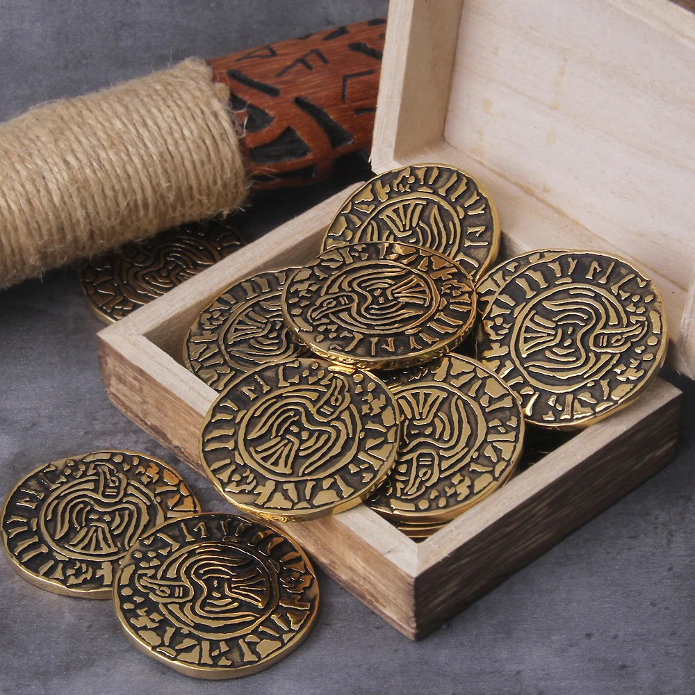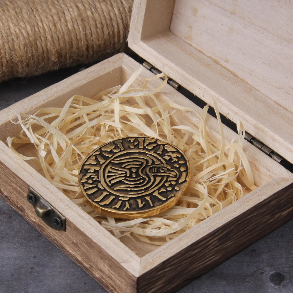 Kreatives Souvenir, vergoldete Wikingermünze, Sammlerstück, tolles Geschenk, Bitmünze, Kunstsammlung, goldene Gedenkmünze mit Holzbox