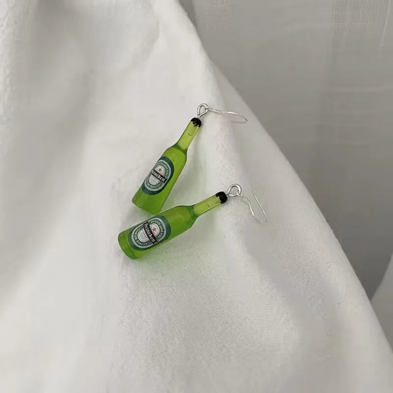 Modische Ohrringe aus Harz mit Bierflasche, kreative Simulation von Mineralflaschen, Ohrringe, süße handgemachte Ohrringe, Damenschmuck