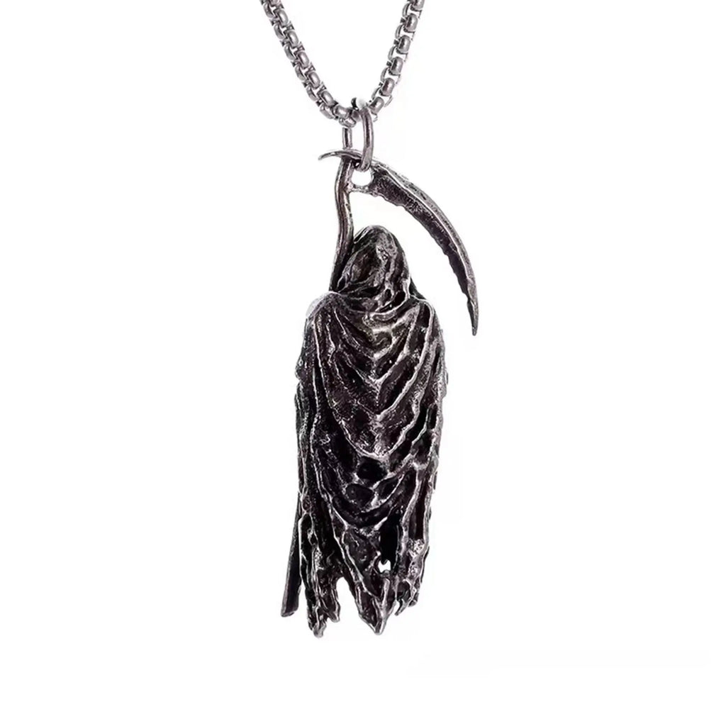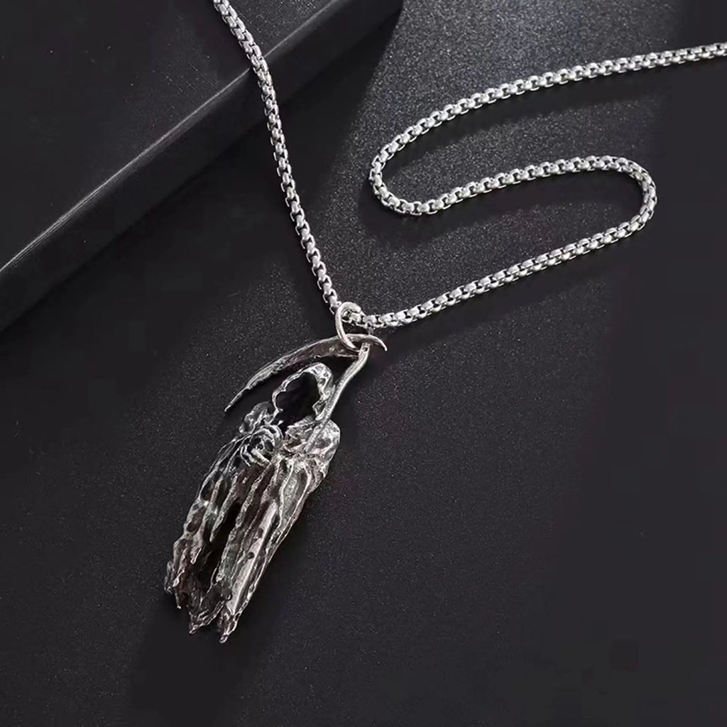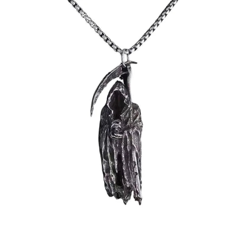 Gothic Style Death Scythe Necklace Unique Personality Dark Theme Sweater Chain Titanium Steel Alloy Cartoon Devil Pendant