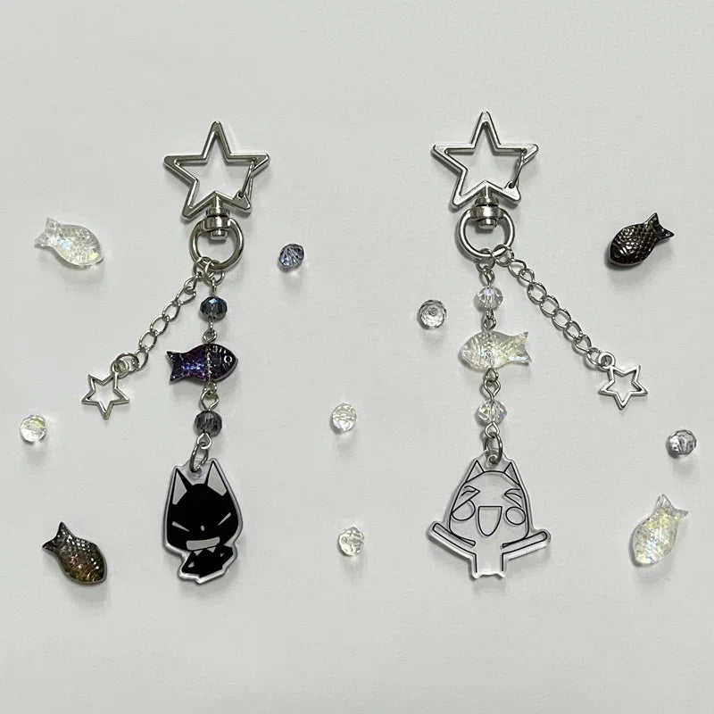 Handgefertigter Toro Kuro Schlüsselanhänger mit funkelnden Fischen und süßen Katzen