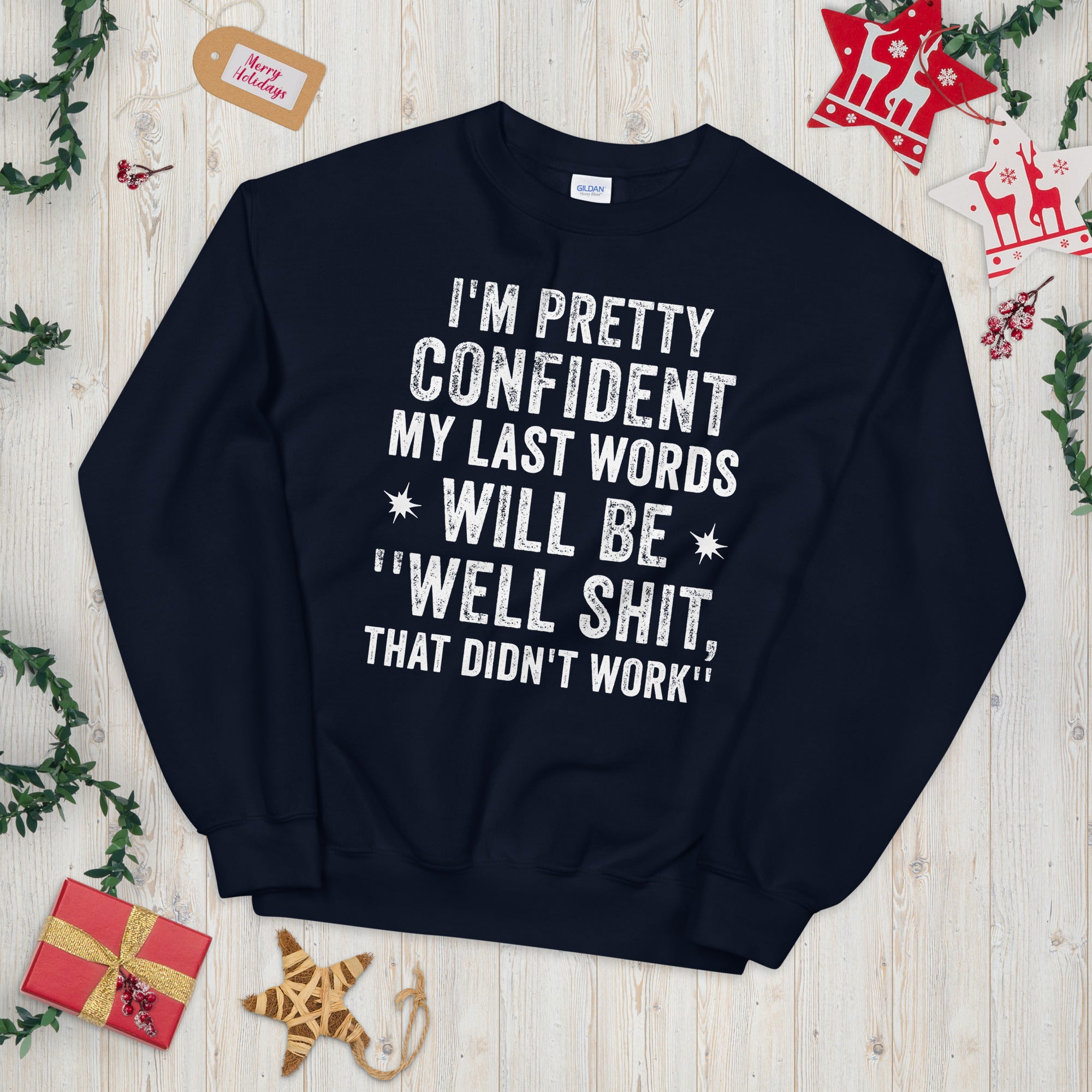 Ich bin ziemlich zuversichtlich, dass meine letzten Worte gut sein werden. Scheiße, die nicht funktioniert hat. Lustiges Sweatshirt
