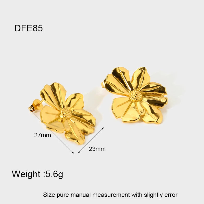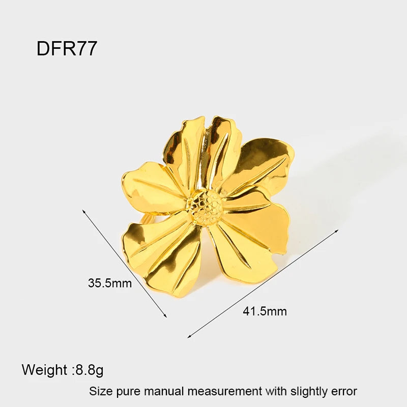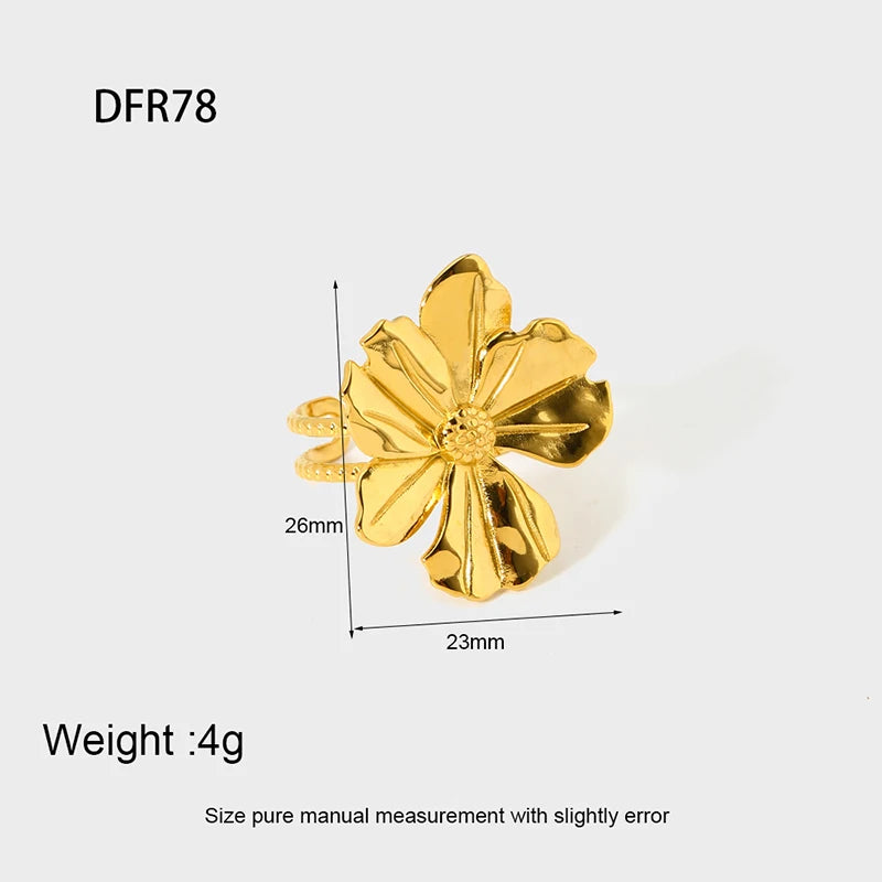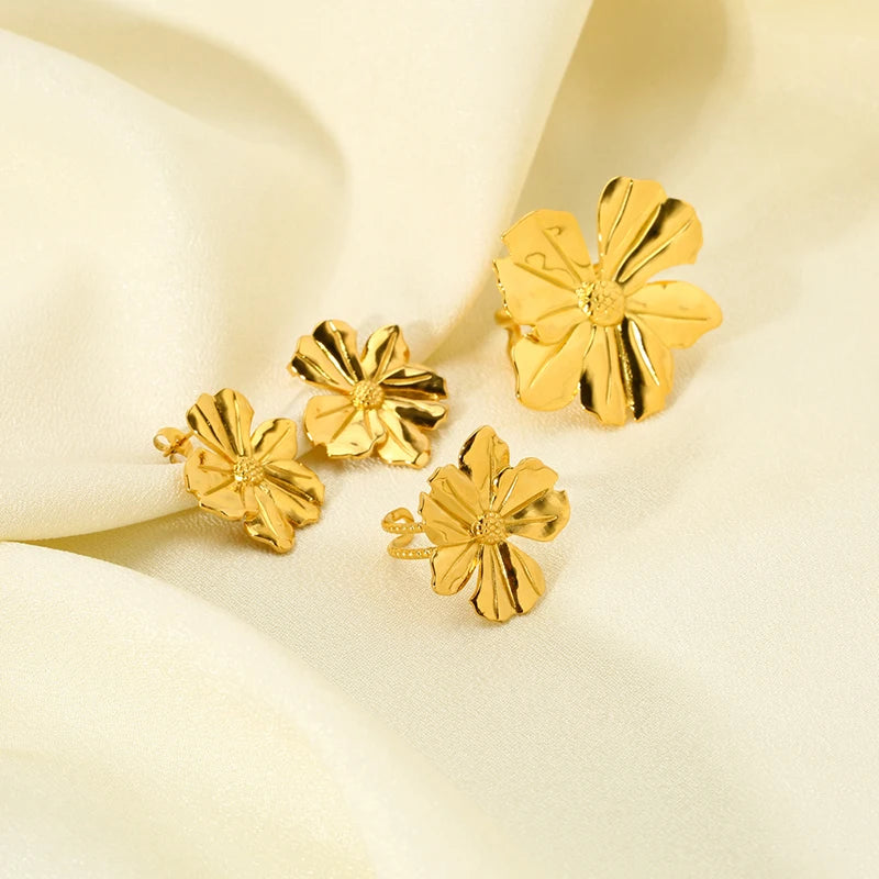 INS Fashion Edelstahl Wasserdicht 18K Gold Farbe Sonnenblume Statement Offener Ring Ohrstecker Set für Frauen Sommer Strand Geschenk