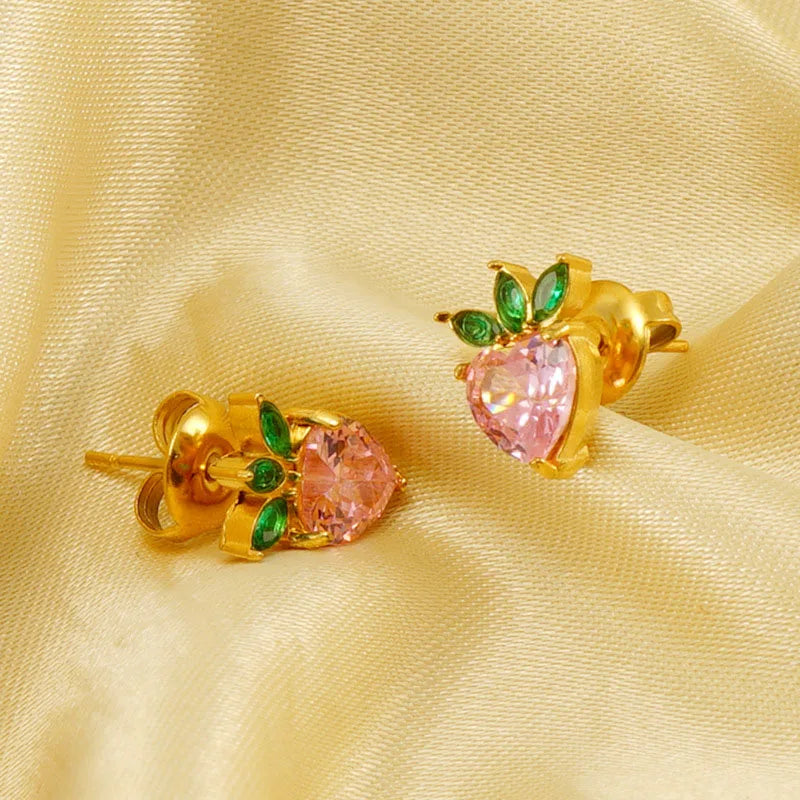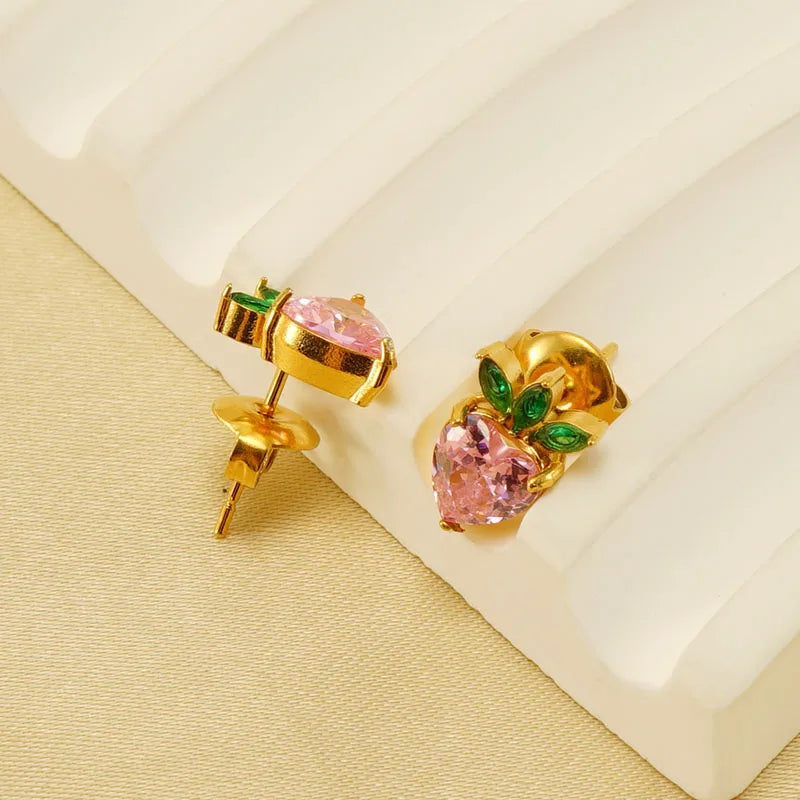 INS Sommer 18K Gold Farbe Edelstahl Rosa Zirkonia Obst Ohrstecker Wasserdicht Niedlich Post Ohrring Schmuck Geschenk