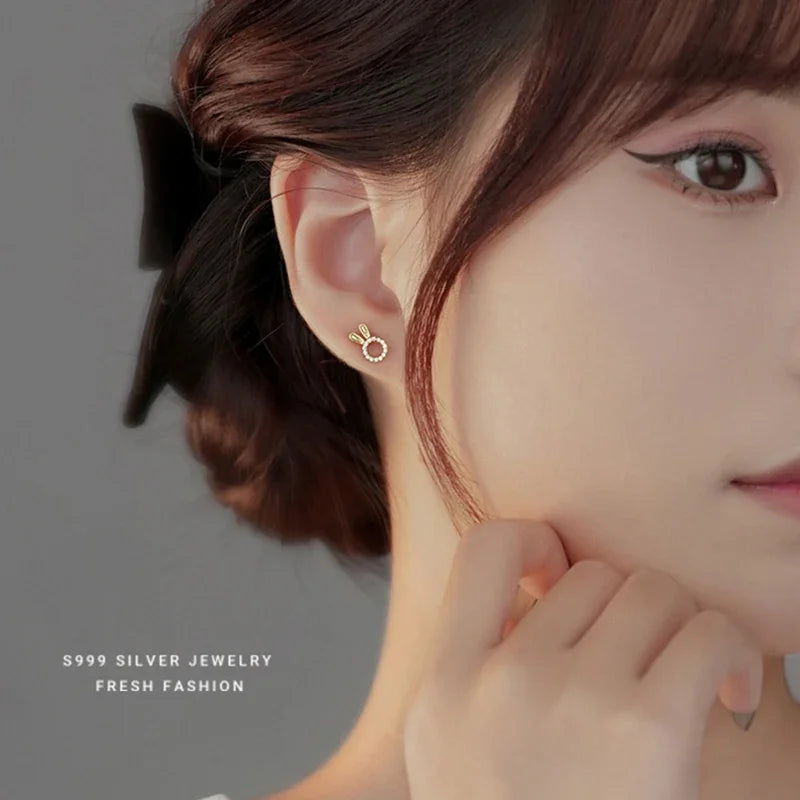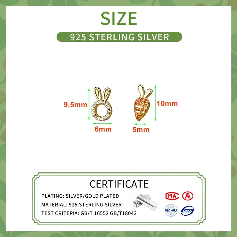INZATT Real 925 Sterling Silver Zircon Carrot Rabbit Mini Stud Earrings for Women Cute Fine Jewelry 2024 Trendy Accessories