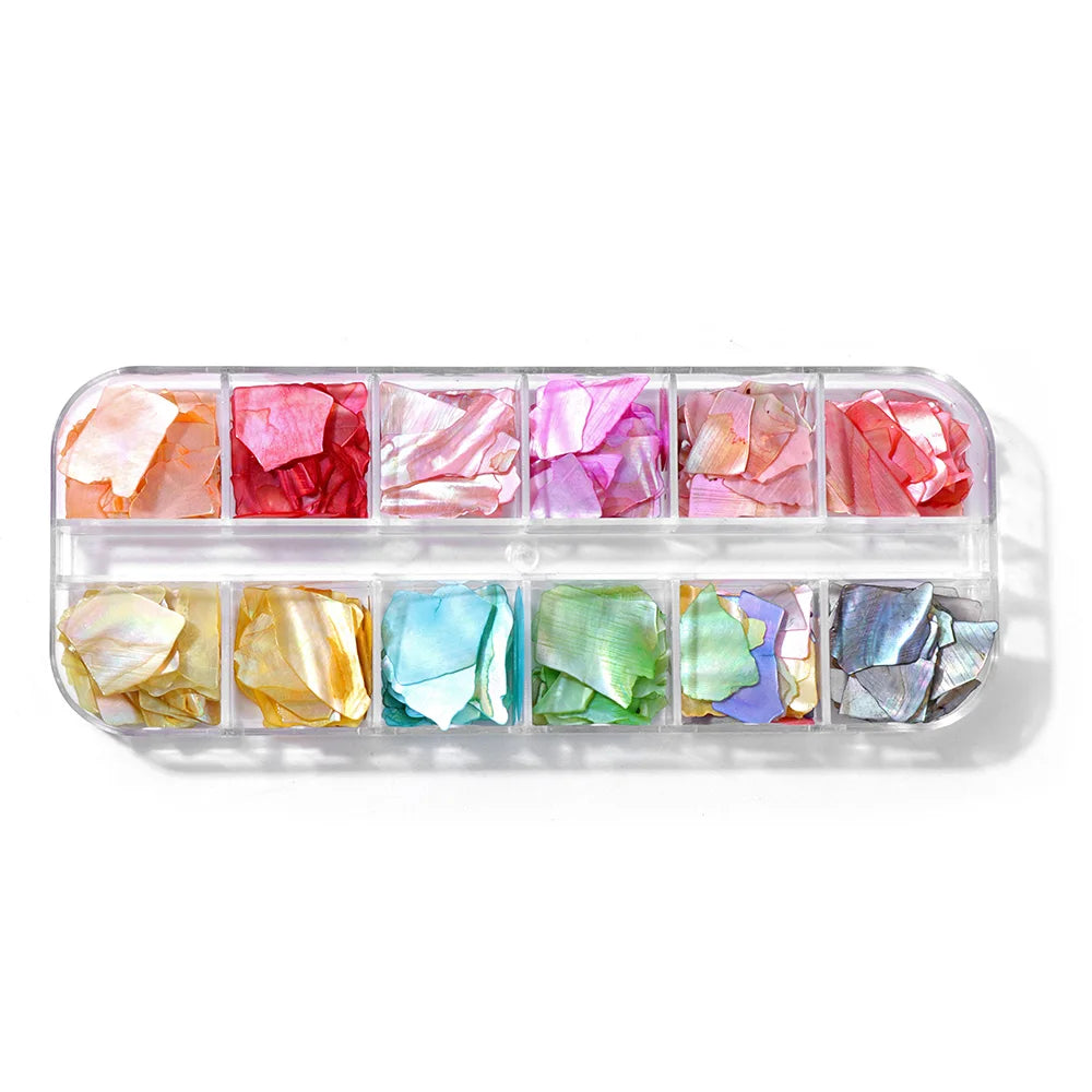 Unregelmäßige Abalone-Fragmente, Splitter, Kiesel, Muschelglitzerflocken für Nagelkunstdekoration, DIY-Charm-Maniküre-Accessoires