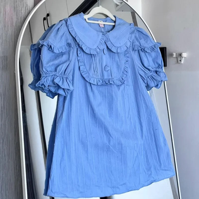 Japanische Sweet Lolita Blusen für Damen, niedliche Rüschen, Peter-Pan-Kragen, Puffärmel, JK-Shirts, Vintage-Kawaii-Tops für Mädchen, lockere Passform.